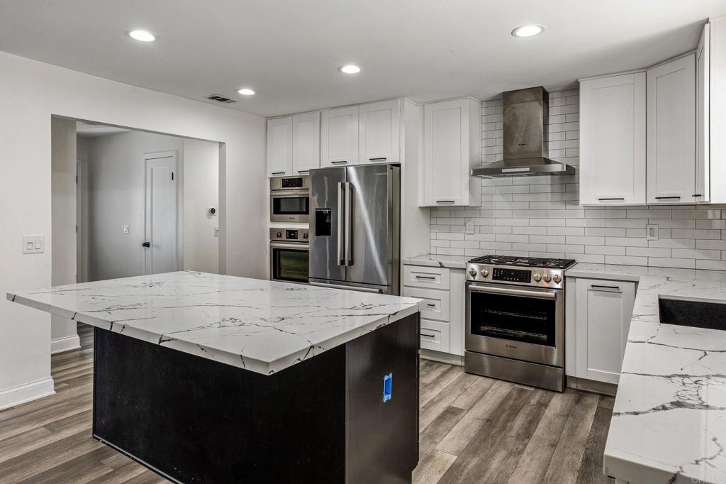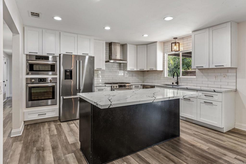 Located in the highly desirable Calavo Gardens/Mount Helix neighborhood of La Mesa, this beautifully renovated single-story home offers a fresh, modern feel with thoughtful updates throughout. With 3 bedrooms and 2 bathrooms, the home features a bright, open-concept layout, updated flooring, and designer finishes. The reimagined kitchen is a true standout—featuring sleek cabinetry, contemporary countertops, and a central island perfect for meal prep, casual dining, or entertaining. Additional upgrades include recently replaced faucets, interior doors, and—not pictured—new closet doors throughout, adding a polished and cohesive look. The spacious primary suite offers a peaceful escape, enhanced by a matching new vanity in the ensuite bath. Not pictured, all closet doors were replaced in the bedrooms. Outside, enjoy a large front yard and even bigger backyard—ideal for entertaining, relaxing, or play. A newly installed perimeter fence offers added privacy, while the covered patio creates a shaded retreat. The property also includes ample RV parking and paid-off solar panels for energy efficiency. Just minutes from shopping, dining, and freeway access, this move-in-ready home offers modern updates in a prime La Mesa location. Don’t miss your chance to make it yours!
