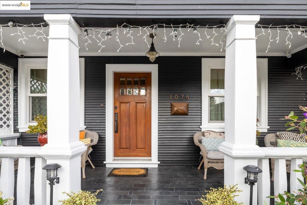 An artful reimagining of a classic Craftsman, this enchanting 2bdrm/1ba bungalow sits in the heart of Oakland’s beloved Golden Gate district – just moments from neighborhood coffee shops, the local library, recreation center, public transit, & more. The moment you arrive, whimsy & craftsmanship take center stage. Artisan stained glass, eloquent period details & thoughtful creative touches infuse this home w/warmth & personality. Inside, natural wood wainscoting & an original stone fireplace w/gas insert anchor the living room, complemented by built-in shelving that blends beauty & function. A charming country kitchen w/custom cabinetry, a remodeled bath featuring a shower-sauna + a flexible floor plan offer comfort with refreshing versatility. Enjoy watching the world go by from the welcoming front porch, perched above meticulously crafted stone steps or retreat through the back door to an expansive private deck—lush w/potted plantings on a drip system—ideal for entertaining or quiet reflection. An oversized detached garage opens the door to endless possibilities: a creative studio, home office, hobby space, abundant storage, or potential ADU opportunity*. This is a home that delights, inspires, & invites you to make it your own! *Buyers to confirm permisable uses w/City zoning.