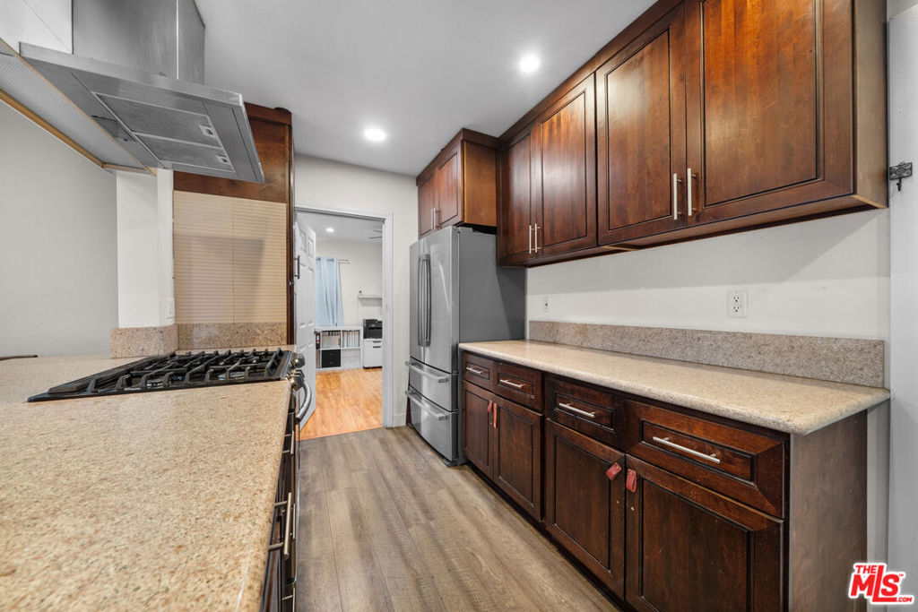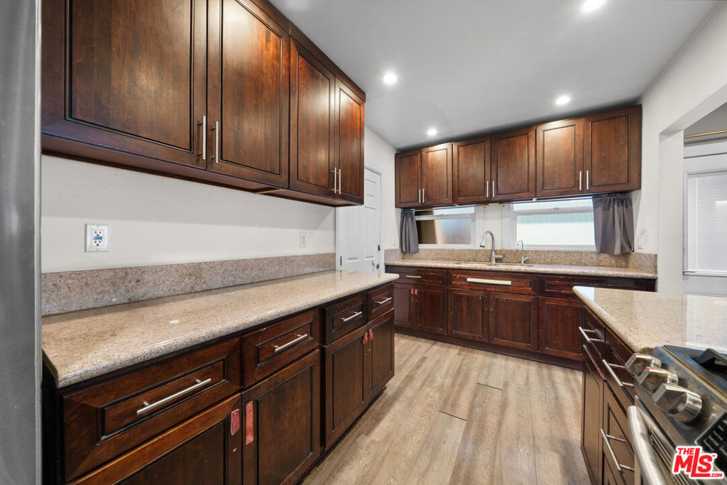 LOCATION! LOCATION! Spacious and updated 3BR/2BA, 1260SF home in a prime Los Angeles location, near USC, shopping, restaurants, and big markets with easy access to 101, 10, 5, and 110 FWY. Features include an open floor plan with hardwood floors, recessed lighting, and a cozy fireplace. The remodeled kitchen offers granite counters, stainless steel appliances, custom cabinetry, and breakfast bar. Primary suite includes walk-in closet, dual sinks, soaking tub. Additional highlights: front deck, private backyard with trees, washer/dryer, wall A/C units in all rooms, tankless water heater, dual pane windows, ceiling fans, reinforced foundation, copper plumbing, upgraded 100 AMP electrical, and CCTV security system. A separate rear entrance provides flexible use for a guest suite or rental opportunity. No parking on site. Move-in ready! Ideal for owner occupancy, rental income, or Airbnb investment!