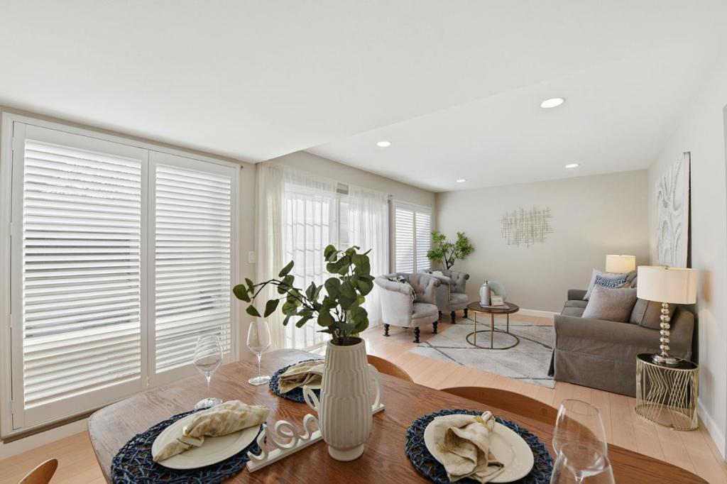 Rarely available ground-floor townhouse lives like a single-family home. Meticulously maintained & thoughtfully updated by the original owner for 47 years. No kids, no dogs. Featuring 2 bedrooms/ 2 bathrooms, the home offers a bright, welcoming layout that feels larger than the sq ft. Updated Armstrong flooring throughout, double-pane windows, smooth ceilings, recessed lighting, and fresh interior paint. Kitchen and bathrooms showcase durable Kerrock countertops, wood cabinetry, and clean, timeless finishes. New cordless blinds & shutters enhance the living area with high ceilings, while bypass shutters provide privacy in the primary bedroom that also offers high ceilings. A large, spacious private patio extends the living space outdoors; perfect for entertaining, gardening, or relaxing in the fresh air. Add’l highlights include double-car garage w direct access to the house & a door to the patio for gardening. Very desirable location in a smaller pod of just 3 units, offering added privacy compared to the typical 6-unit configuration. The beautifully landscaped community features lush greenery & sparkling pool w bathrooms & community room. Top schools, shopping, restaurants, & Starbucks close by & easy access to Hwys 85 & 280 for a quick commute to major tech employers.