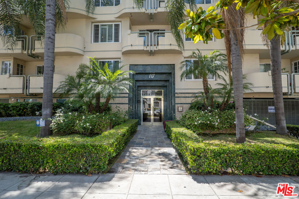 Modern elegance awaits in this beautifully renovated condo, situated within a stunning Art-Deco-style building in prestigious Beverly Hills. This contemporary residence boasts an open floor plan with ample windows, flooding the space with bright, natural light and showcasing its exquisite features and sleek design. Enter a spacious living area adorned with recessed lighting, hardwood floors, and fresh paint, complemented by a newer A/C system. Enjoy romantic evenings by the fireplace or entertain at the wet bar in the living room and dining area. The kitchen features stainless steel appliances and offers a great view from the window. The expansive primary bedroom includes a luxurious closet, providing ample storage space. The tastefully remodeled primary bathroom boasts top-of-the-line fixtures. The second bedroom can also be used as a home office. Enjoy breathtaking city views from the rooftop, ideal for relaxing or entertaining guests. Located just minutes from Cedars-Sinai, Beverly Mall, and a plethora of top-rated restaurants, shops, and vibrant nightlife, this condo offers the ultimate Beverly Hills lifestyle. For your convenience, there are two side-by-side parking spaces, additional guest parking, and a storage room area as well.