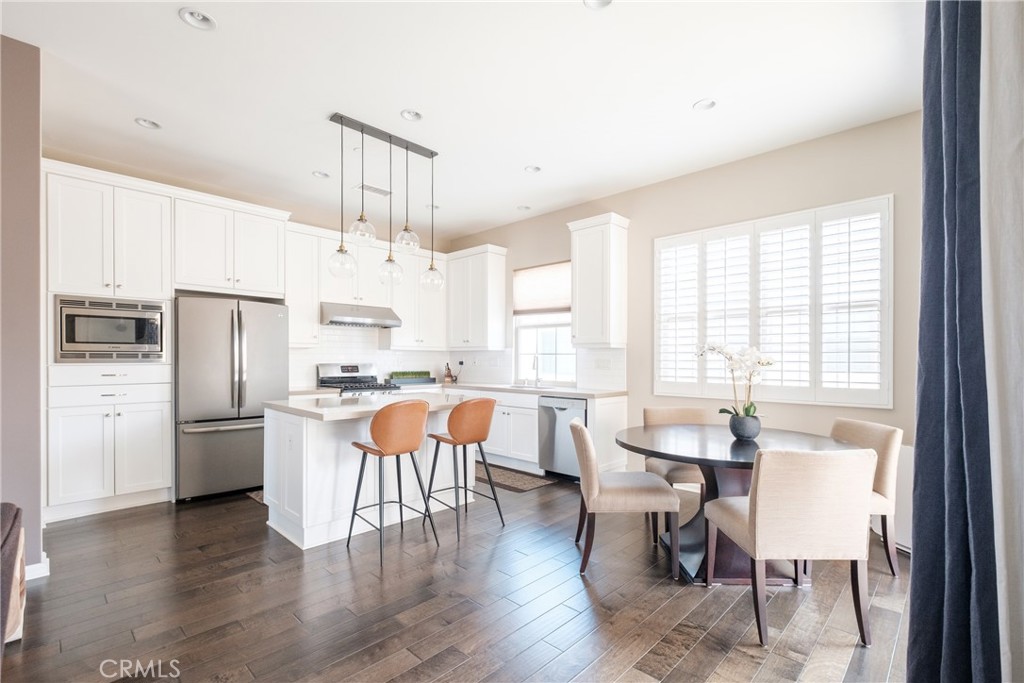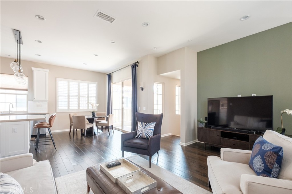 This stunning, upgraded and immaculately maintained 3 bedroom / 3.5 bathroom house is located in a quiet neighborhood across the street from a park. The first floor entry gives direct access to the attached garage and includes a bedroom and ensuite bathroom that is perfect for guests or a home office. The second floor is an open-concept space with engineered hardwood, high ceilings, recessed lighting, and large windows that fill the room with lots of natural light. The Living Room, Kitchen, and Dining Room are connected to create the perfect entertainment space. The gourmet Kitchen is fully loaded with stainless steel appliances, a gas cooktop, a large kitchen island, beautiful Caesarstone countertops, white subway tile backsplash and classic white cabinets. There is also a private balcony to relax outdoors. The third floor has two additional bedrooms, each with its own ensuite bathroom. The Owner’s Suite has a private toilet area, double vanity, and glass-enclosed shower. The other bedroom has a built-in desk and bench and can also be utilized as an office. Separate laundry room with built-in overhead cabinets. Like-new washer and dryer are included! Attached 2-car garage with epoxy flooring, a ton of built-in storage cabinets with extra guest parking in the drive court and on the street. This home is walking distance from award winning schools, resort-style pools and spas, great lawns, picnic areas, soccer fields, playgrounds, basketball courts, BBQ pits, Jeffrey Trail, numerous parks and much more. Enjoy all the luxury of Cypress Village with quick drives to retail centers, Irvine Spectrum and multiple freeways for a shorter commute anywhere in Orange County.