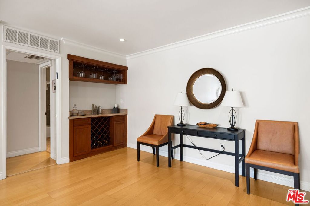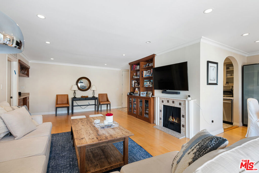 Discover convenient living at its finest in this bright Brentwood condo, perfectly positioned near popular coffee shops and restaurants. This beautifully designed rear unit features two bedrooms on opposite ends for maximum privacy, while the open living and dining area with decorative fireplace (photos of fireplace have been enhanced) provides an inviting space to gather. Both generously proportioned bedrooms include custom walk-in closets and updated bathrooms. The kitchen showcases Samsung stainless steel appliances and plenty of storage. Enjoy hardwood floors throughout, a custom-built bar, and built-in bookshelves. Your private patio is perfect for grilling, or take advantage of the community pool for entertaining. Two side-by-side parking spaces included.