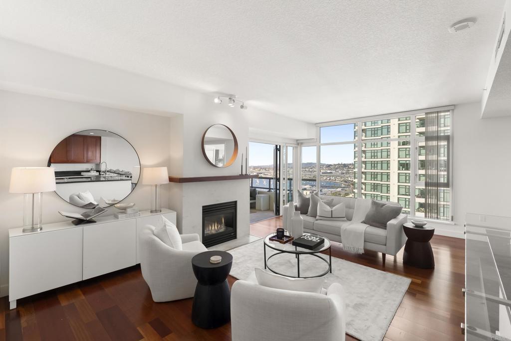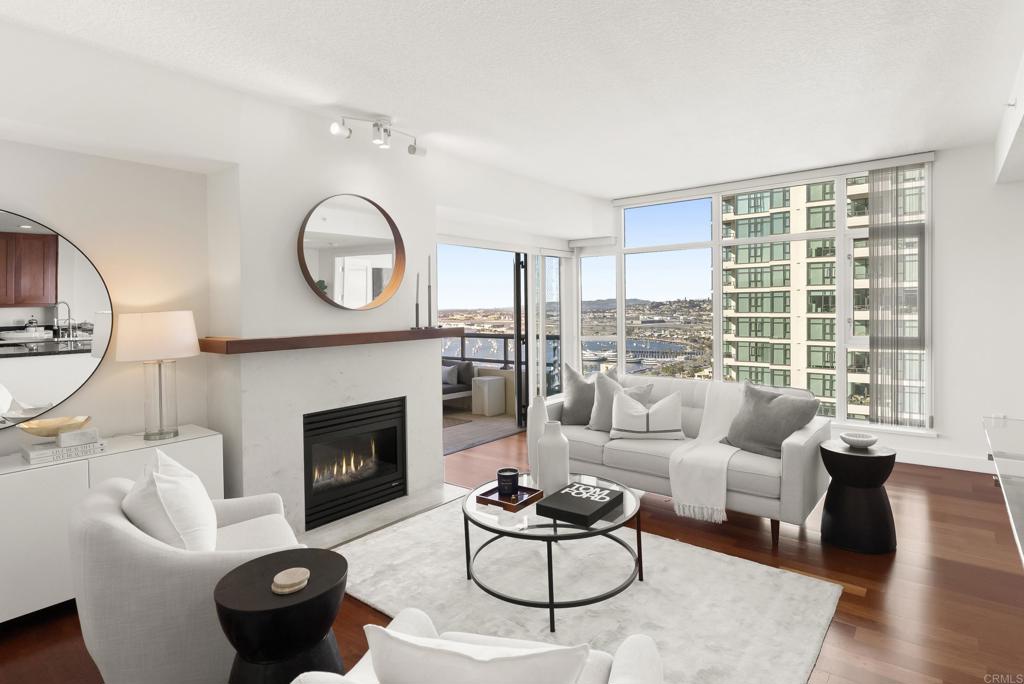 Elevate your lifestyle in this breathtaking 25th-floor condo in the heart of San Diego’s prestigious Marina District where urban sophistication meets stunning bay views. The open-concept layout seamlessly connects the Living area to a stylish Kitchen & Dining area perfect for entertaining or enjoying quiet evenings at home. Featuring 2 bedrooms with views, this unit includes a versatile office space, ideal for remote work or creative pursuits. Enjoy floor-to-ceiling windows that flood the space with natural light. Step out onto your private balcony to soak in the vibrant city skyline and serene bay & sunset views. With access to top-notch building amenities, including a fitness center, pool, and communal lounges, this condo offers a lifestyle of luxury and convenience. This chic condo is designed for those who appreciate the finer things in life, offering a perfect blend of comfort and style. Experience the best of San Diego living.