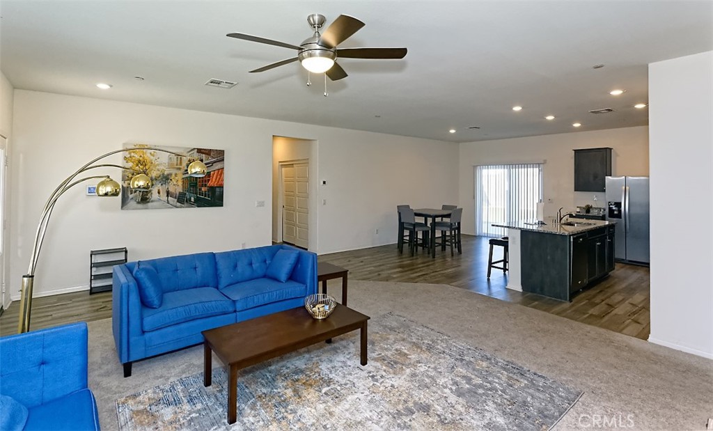 Modern single-story home built in 2022, offering 4 bedrooms, 2 baths, and approximately 2,000 sqft of well-designed living space in a desirable North Victorville neighborhood. Open-concept layout features a spacious kitchen with contemporary finishes, ample cabinetry, and seamless flow into the main living areas; ideal for entertaining and everyday comfort. Private primary suite includes ensuite bath and walk-in closet. Situated on a 7,666 sqft lot with low-maintenance desert landscaping and a two-car attached garage. Owned solar provides energy efficiency and long-term savings. Conveniently located near schools, parks, shopping, and major commuter routes. Turnkey newer construction with modern systems, ideal for buyers seeking style, efficiency, and value in Victorville.