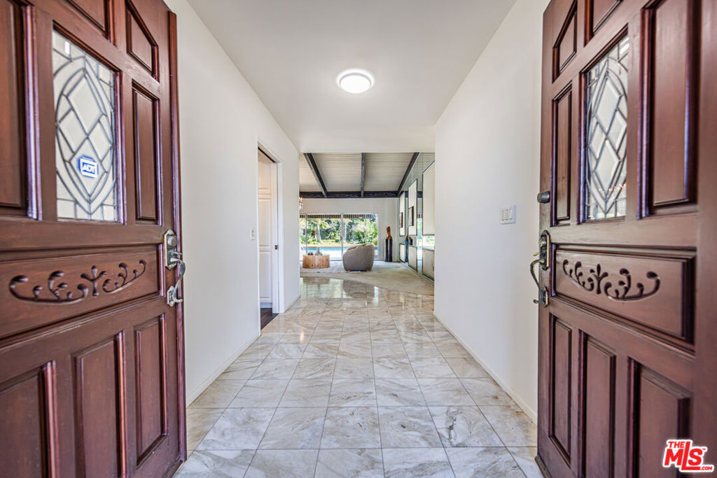 Don’t miss this rare opportunity to own a spectacular single-story Mid-Century Modern residence in the prestigious Knollwood Country Club Estates, perfectly designed for family living and effortless entertaining. Spanning over 3,021 square feet, this expansive home offers a true open-concept layout with seamless flow between the living, dining, and family rooms ideal for gatherings both large and intimate. A striking stone double-sided fireplace, vaulted ceilings, smooth walls and ceilings, and abundant architectural character anchor the space, while walls of windows and multiple sliding glass doors flood the home with natural light and create a beautiful indoor-outdoor connection. The spacious kitchen features generous cabinetry, ample counter space, a breakfast bar, and is thoughtfully positioned at the heart of the home perfect for hosting, daily family life, and casual entertaining. Recessed and accent lighting throughout, including elegant crystal chandeliers, adds warmth and sophistication.The Private Bedroom wing offers a luxurious, fully customized primary suite, complete with upgraded lighting, electric shades, built-in cabinetry, a walk-in closet, and an oversized spa-like ensuite featuring double vanities, a walk-in shower, and soaking tub. Two sliding doors open directly to the covered patio and a secluded in-ground hot tub, creating a serene retreat. Three additional bedrooms provide ideal flexibility for families: two share a Jack-and-Jill bathroom, while the fourth, perfect as a guest room or home office , offers peaceful views of the pool and backyard. Step outside to an exceptional entertainer’s backyard that truly sets this property apart. Backing directly to the Knollwood Golf Course, the yard offers lush greenery, tranquil views, and remarkable privacy, creating a resort-like atmosphere. Enjoy a large swimming pool, expansive grassy areas for kids and pets to play, rose gardens, a gazebo, and multiple spaces designed for dining, lounging, and hosting, all framed by mature landscaping and the open fairway beyond. The front yard welcomes you with manicured lawns and a stunning mature olive tree, while the two-car garage with laundry hookups adds everyday convenience. With its single-story design, open flow, private golf-course setting, and exceptional outdoor living, this home embodies the very best of Knollwood Country Club living. A truly special opportunity in one of Granada Hills’ most sought-after premier neighborhoods.