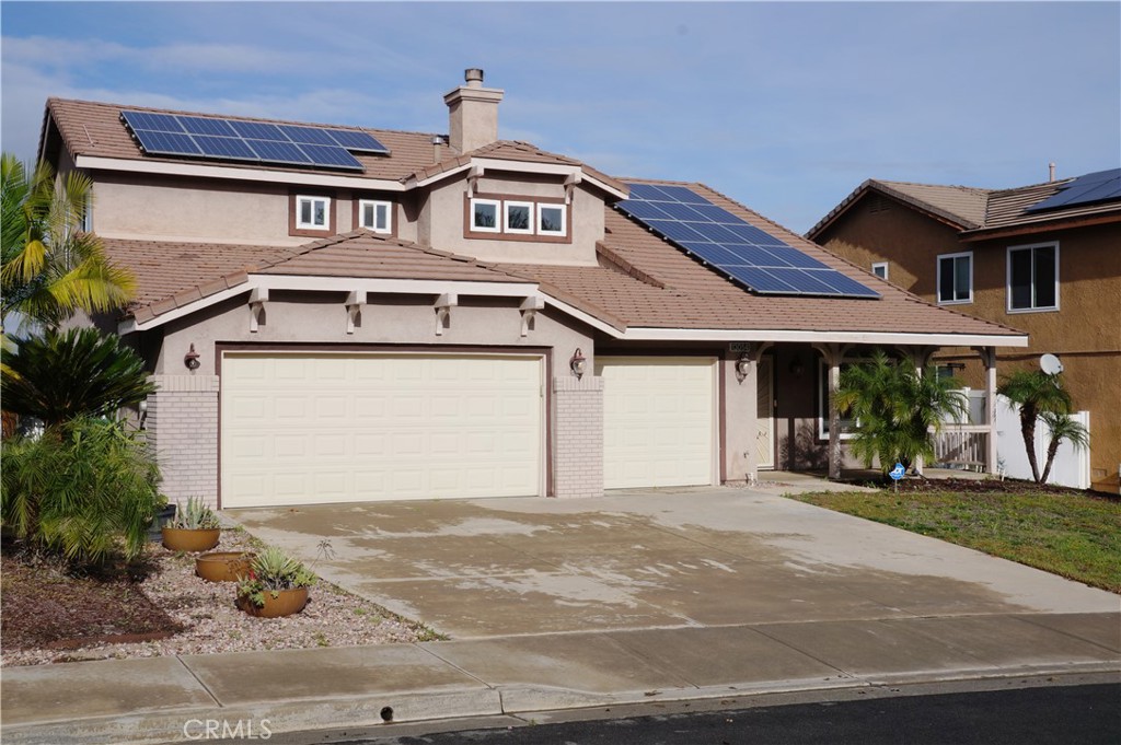 Beautiful Temescal Valley move-in ready 2496 sq. ft, 4 bedroom + den, 3 bath, 3 car garage home in the desirable friendly community of Horsethief Canyon Ranch, surrounded by views of the Cleveland National Forest. Kitchen open to large family room. Granite counters in kitchen and primary bath. Backyard has view, water-smart artificial grass and large Alumiwood style patio cover with fan, perfect for outdoor relaxing and entertaining. PAID OFF Solar, EV charging port, water softener, whole-house fan, newer HVAC system, reverse osmosis water dispenser, upgraded windows thru out. Low-fee HOA features two swimming pools, two spas, clubhouse, parks, a complete workout gym, tennis courts, dog park, community events, plus much more. LOW, LOW TAX RATE!!! K-8th grade school is right in neighborhood. Nearby shopping, restaurants and entertainment at the Shops at Sycamore Creek, Dos Lagos, Corona Crossings, Tom’s Farms, and world class Glen Ivy Hot Springs.