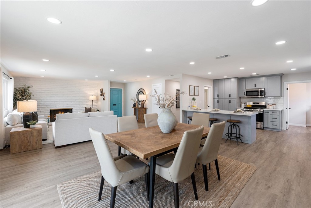 Two Primary Suites! Welcome to this lovely turnkey 4 bedroom, 3 bath, single level home located in a desirable Tustin neighborhood. Everywhere you look you will find updated features combined with original uniqueness. With its generous 2,203 square feet, two primary en suite bedrooms, 3 remodeled bathrooms, and a separate laundry room, this is a rare find that offers flexibility for multi-generational living, guests, or convenience. This is a great house for entertaining or cozy nights in, with its traditional gas and wood burning fireplace in the living room which is open to the large dining area. Overlooking this great room is a remodeled kitchen with its quartz peninsula with plenty of room for homework, and a 5-burner range, where the chef remains a part of the action. One primary ensuite bedroom has its own cozy wood-burning fireplace, private patio, freestanding tub with separate shower, and two vanities. The second primary bedroom also has been beautifully upgraded with its walk in closet, tiled shower, and direct access to the backyard. It is a light filled home with a flat backyard and patio off the dining room – perfect for al fresco dining with family and friends. Recent upgrades include luxury vinyl flooring throughout, new 200 amp electrical panel, tankless on-demand water heater added for energy efficiency, and fresh exterior paint. Set on a corner lot in a welcoming neighborhood with low turnover, this 2-car garage home is ideally located between Tustin Marketplace and Trader Joe’s, near Old Town Tustin, with easy access to the 5, 55, 22, 241, and 57 freeways. Award winning Tustin Unified schools include Red Hill Elementary. There is no Mello Roos or HOA fees. You will never want to leave.