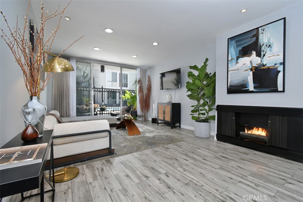 Experience luxury living in the heart of prime West Hollywood! Step inside this stunning 1-bedroom, 1-bathroom condo, where large floor to ceiling windows fill the interior with natural light throughout. The spacious open-concept living area, complete with a stylish fireplace is perfect for both relaxation and entertaining. Sliding doors open to your own balcony overlooking the pool area, creating a serene and resort-like ambiance.The stylish kitchen maximizes space with wood cabinetry, quartz countertops, stainless steel appliances, and bar seating for guests. Along the back wall, built-in cabinetry with a wet bar adds extra storage and convenience. Retreat to the well-appointed bedroom which offers generous space and a large closet. The elegantly designed bathroom showcases modern fixtures and finishes, featuring a shower and a large vanity with abundant storage. Other amenities include controlled building access, assigned parking, an updated gym, and a red-light therapy room, all blending convenience with modern living. For added security the building offers controlled access and a gated parking garage. Discover the dynamic neighborhood with ease, conveniently located near the iconic Sunset Strip! Just steps away, you’ll find the legendary Chateau Marmont Hotel, world-class dining, trendy boutiques, exceptional shopping, and endless entertainment options right outside your door! Experience the perfect blend of modern comfort and West Hollywood sophistication in this must-see condo!