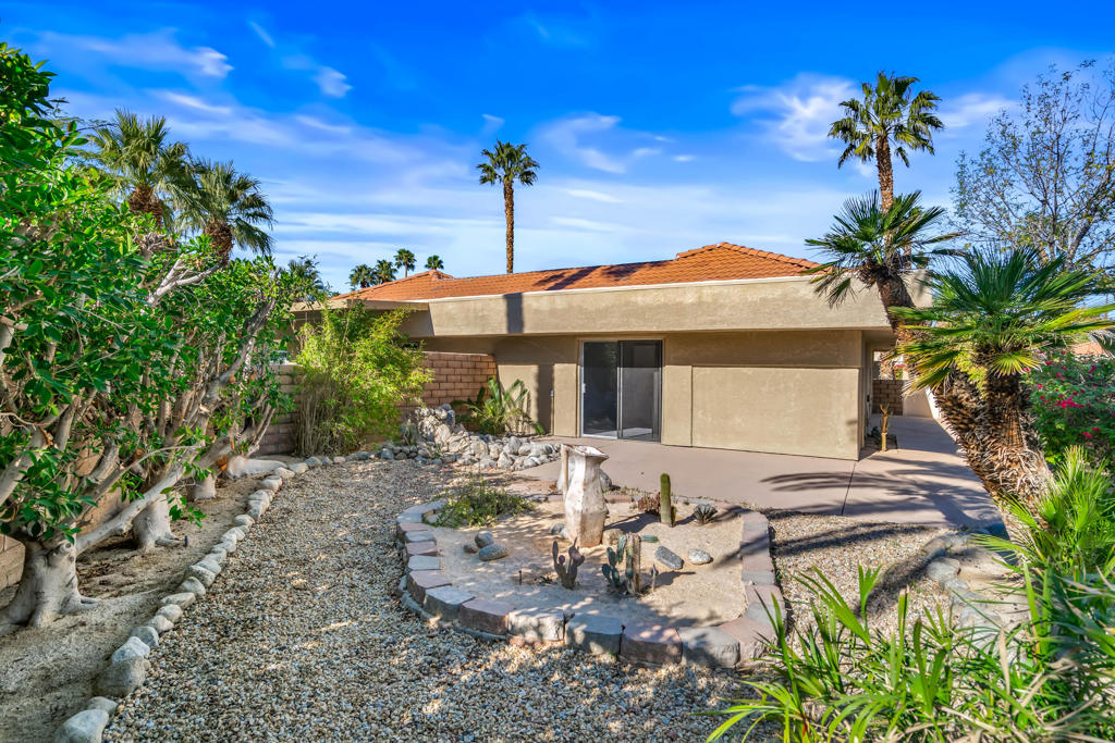 Nestled in the friendly gated community of Sunrise Palms near all conveniences and minutes from Downtown Palm Springs with its restaurants, shops and entertainment, this single level end unit (best location near a pool and community mailbox)) 2 bed/1 bath condo would make for a wonderful full time or part time residence. Enjoy an open floor plan with a well fitted kitchen with solar tube skylight, updated cabinets and brand-new stainless appliances (Samsung stove/dishwasher/microwave/ fridge) as well as your own washer/dryer also brand new (located in an inside closet). Enjoy the additional peace of mind of a newer HVAC System & water heater. The current owners removed the popcorn ceilings, installed new interior doors and added brand new wall-to wall carpeting in all bedrooms to complement the low maintenance ceramic tile in the main living space. This floor plan offers two spacious bright bedrooms (one with a great spot to install a built-in desk), each with a walk-in closet and share a large bathroom with a tiled enclosed shower/tub combo and updated cabinetry . Outdoors await a private fully enclosed sizeable yard (pets will love it) with majestic palms , mature landscaping , freshly painted concrete decking, a peaceful water feature perfect for entertaining friends & family and enjoying sensational mountain views…not convinced yet ? this condo comes with an attached one car garage . Sunrise Palms offers resort-style amenities, including 8 pool and spas (2 heated year-round) 2 tennis courts, a pickleball court, 2 basketball courts, and multiple park areas. Monthly HOA dues cover water, trash, roof and outside maintenance. Seller financing available with a minimum of 20% down payment. Call for a private viewing of this wonderful value offering.