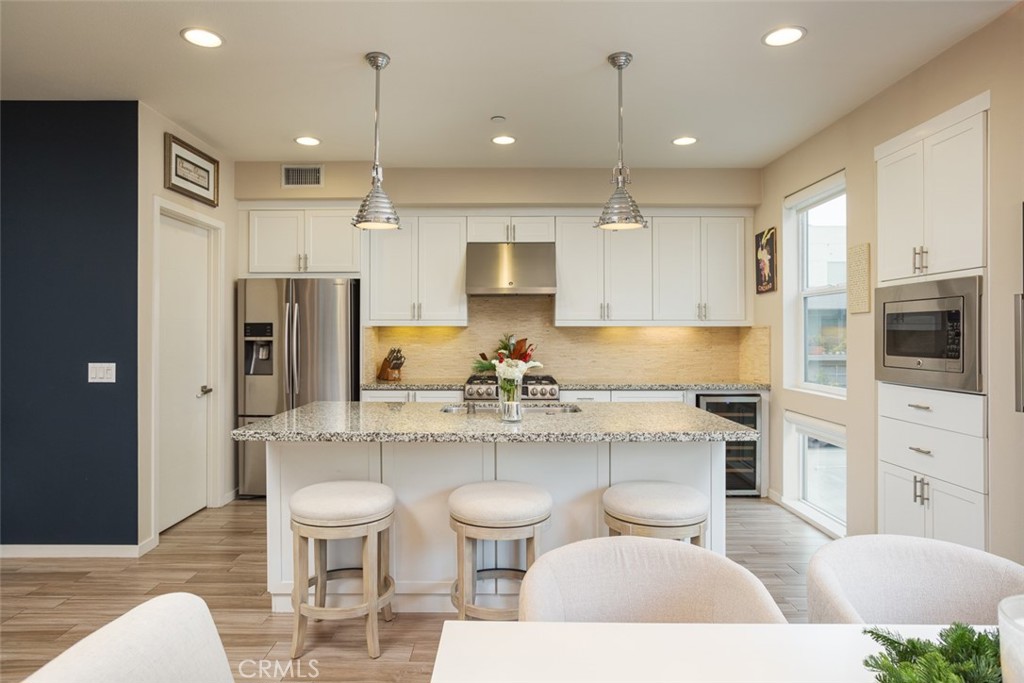 A premier location with stunning finishes, 143 Tribeca Way sits on the interior of this desirable modern contemporary Level One community. Looking for ocean views, minimal road noise and turn-key, modern luxury in the heart of Costa Mesa? We got you! Located in the interior of this community, this unit has only one shared wall and a boat-load of natural light. Level One is a sought-after, urban live-work community surrounded by restaurants, shopping and cafes. A short bike ride to Lido Village and the sand. Whether you plan to run your business from the first floor or a flex-room for the kiddos to play, this commercially-zoned first floor has many opportunities for families and/or entrepreneurs. Enhance the ocean breeze when you’re hosting a fundraiser for your start-up by rolling the accent door. A 2,151 sqft open-plan design has plenty of storage, porcelain tile wood-like floors, plush carpet, thoughtfully upgraded bathrooms and stainless steel appliances; all just some subtle reasons why this design has become so popular in Orange County. Three bedrooms, a huge master walk-in closet, immaculately maintained: all the stuff you want, this unit has. The expansive rooftop deck gives you 360 view from the snow-capped Saddleback Mountains back to Catalina Island. An attached 2-car attached with high ceilings, new epoxy flooring, new motor and extra storage await those with a plethora of toys to store. Lastly, this is a substantial community highlight in Orange County, so, it has to be mentioned: you’re in walking distance of Trader Joes.