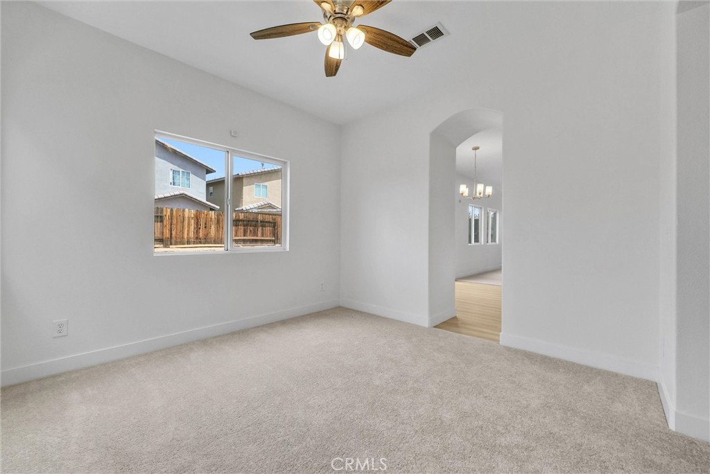 Welcome to this beautifully upgraded 5-bedroom, 3-bathroom home, offering over 2,300 square feet of comfortable and stylish living space. This home features fresh paint, new flooring, new appliances, more. The open-concept layout seamlessly connects the spacious family room, dining area, and kitchen—perfect for both entertaining and everyday living. The family room is filled with natural light and centered around a cozy fireplace, creating a warm and inviting atmosphere. A conveniently one bedroom and one bathroom on the main floor make an ideal guest room or home office. Upstairs, the luxurious primary suite includes dual vanities, a soaking tub, a walk-in shower, and ample closet space. You’ll also find a separate laundry room for added convenience. Each of the additional bedrooms is generously sized and features large closets for plenty of storage. Combining modern comfort with timeless elegance, this home is truly move-in ready and waiting for you to make it your own.