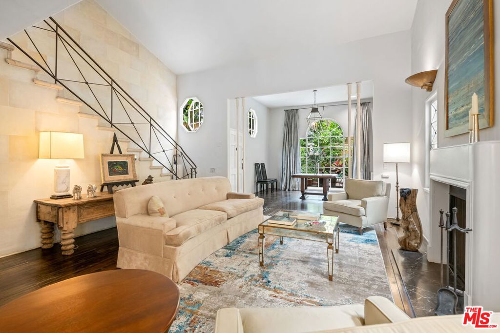 DRAMATIC AND SECLUDED 1930’S COURTYARD TUSCAN VILLA BEHIND GATES. THIS LAVISH OLD HOLLYWOOD 2 LEVEL VILLA, IS BEAUTIFULLY AND COMPLETELY FURNISHED ALL IN HIGHEST QUALITY WITH VINTAGE RUGS, SILK DRAPERIES, ANTIQUES, ORIGINAL ART, FINE LINENS. TALL ARCHED WINDOWS OFF GRACIOUS LIBRARY/ENTRY. GORGEOUS LIVING ROOM WITH 19 FOOT CEILINGS HAS A DECORATIVE FIREPLACE. FORMAL DINING ROOM. KITCHEN COMPLETELY EQUIPPED INCLUDING FINE CHINA, STERLING SILVER & BACCARAT CRYSTAL. GORGEOUS ORIGINAL STAIRCASE LEADS TO A LARGE PRIMARY SUITE WITH AMPLE CLOSETS & STORAGE. HUGE LOFT/MEDIA ROOM THAT CAN CONVERT TO A SECOND BEDROOM WITH PRIVATE BATH & CLOSET. 2-CAR PARKING NEXT TO BACK ENTRANCE. THE LUSH CENTRAL GARDEN, COMPLETE WITH FOUNTAIN, EXOTIC FLORA, TREES, KOI POND AND RESIDENT TURTLES, DEFY THE FACT THAT YOU ARE ONLY A FEW SHORT STEPS FROM SUNSET AND CRESCENT HEIGHTS. IT IS PRIVATE WITH NO COMMON WALLS, QUIET & SECURE.