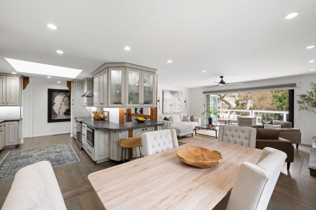 Welcome to 145 Devonshire Blvd, a meticulously maintained home designed for endless indoor-outdoor entertaining. With 4 bedrooms plus a dedicated office, 3 bathrooms including 2 en-suites, a family room & detached pool house, there’s plenty of room to work, host or unwind. The main level features 3 beds, 2 baths, a beautifully updated chef’s kitchen w/ concrete countertops, custom cabinets, & bright skylight, seamlessly leading to the dining/living spaces. The living room is illuminated by La Cantina glass accordion doors which flow to the 420 sq ft view deck overlooking the backyard of your dreams. The downstairs primary suite is your private sanctuary, w/ walk-in closet & luxurious spa-like bath w/ dual sinks, tankless smart toilet, & walk-in rain shower. Lower level also enjoys an office, laundry hook-ups, & a family room w/ access to the backyard oasis. The expansive yard has it all – a sparkling saltwater pool w/ 192 sq ft pool house, Marquis Spa Hot Tub, sports court, & terraced landscaping. Additional highlights are paid-off Solar, EV Charging in the two-car garage, refinished floors, fresh interior paint, newer roof, & more! All this, plus ideally located in the lower hills of San Carlos near Devonshire Little Store, Highlands Park, & sought after top-rated schools!