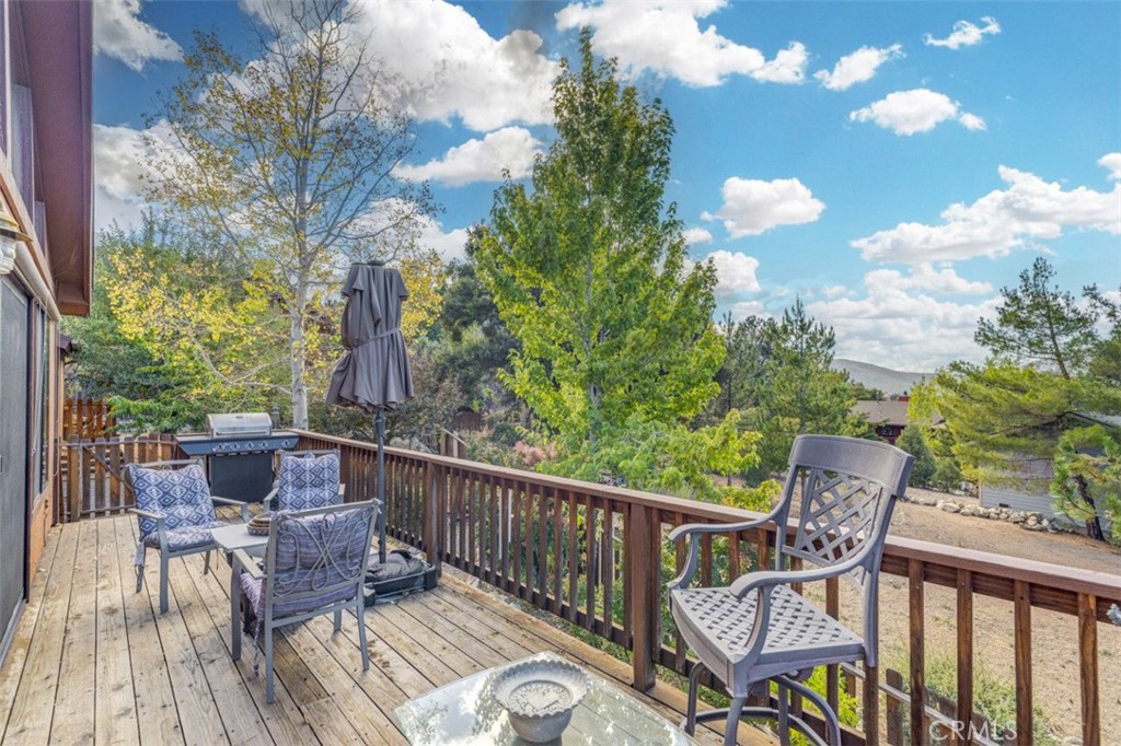 Step into your mountain sanctuary at 15420 Live Oak Way, where rustic charm meets modern comfort in a single-level haven that feels like home the moment you arrive. Nestled on a beautifully landscaped lot with mature trees and a fenced rear yard, this retreat beckons you to embrace the serenity of mountain living, perfect for full-time residence, remote work, or a vacation escape. Enter through the welcoming foyer into a spacious great room that captures the heart. Soaring wood-beamed ceilings and large windows frame stunning mountain views and vibrant sunsets, while a freshly cleaned wood-burning stove adds cozy warmth. New hardwood flooring (2024) flows throughout, tying the open-concept layout together with timeless elegance. The kitchen, open to the great room, features a large island for casual meals or lively gatherings, ample storage, and modern appliances. The adjacent dining area spills onto a spacious deck, expanding your living space into the crisp mountain air—perfect for morning coffee or evening stargazing. The split-wing design ensures privacy. The primary bedroom, a tranquil retreat, offers an en-suite bathroom, walk-in closet, and private deck access for quiet moments. Two well-sized bedrooms share a full guest bathroom, and garage access nearby for convenience. The attached garage, plus extra parking in front and on the side, makes hosting effortless. This home is as practical as it is inviting. A 2022 electrical panel upgrade, new water heater, softener, and filtration system (all 2022) ensure efficiency and peace of mind. A rainproof under-deck storage area adds clever functionality, while central heat and AC keep you comfortable year-round. This home is ready for you to move in and start living your mountain dream. Imagine working from home with inspiring views, hosting friends on the deck, or unwinding in the serene yard. 15420 Live Oak Way is more than a house—it’s a lifestyle waiting for you to claim. Schedule your private tour today and write the next chapter of this mountain story!
