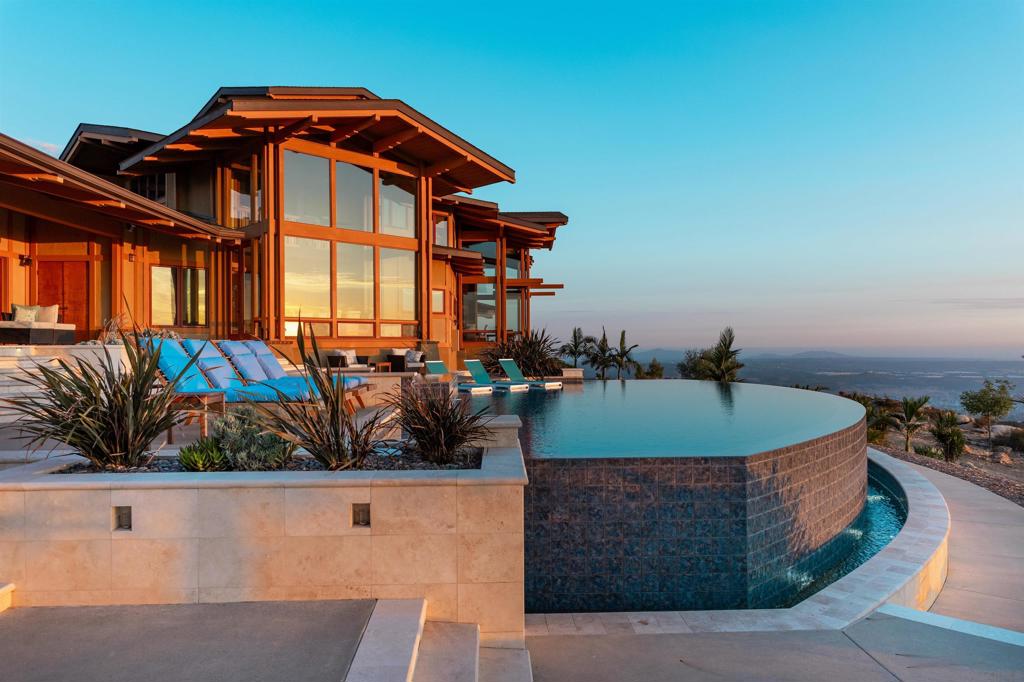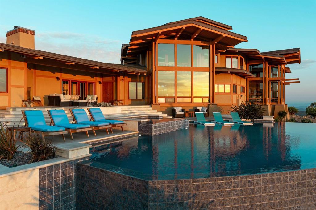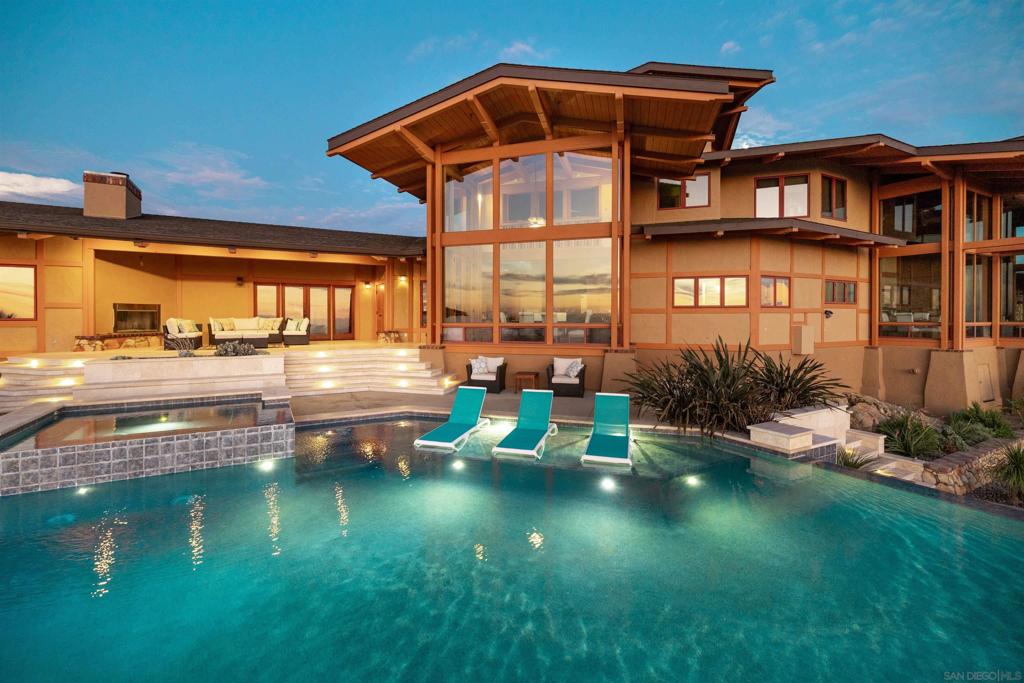 This exquisite luxury property, custom-designed by renowned architect Roger Mohling, offers an unparalleled living experience with ocean and sunset views from all rooms. Perched on a stunning landscape with panoramic views, the home exudes a lodge-like atmosphere, featuring exposed Douglas Fir Wood Beams, rich Brazilian Cherry Wood floors, and meticulously crafted stonework. The stained concrete floors blend seamlessly with the natural materials, enhancing the home’s earthy elegance. The chef’s dream kitchen is equipped with newer high-end appliances, complemented by quartz countertops, creating the perfect space for culinary excellence. The primary retreat offers a serene escape, complete with a cozy fireplace, his-and-her closets, and floor-to-ceiling windows that capture breathtaking views of city lights and panoramic sunset views. Enjoy new saltwater pool and spa by Majestic Pools. Included in this sale is an additional 42 ACRES for a total of 60 ACRES!!! The second parcel can be subdivided. The property is zoned for horses and agriculture, offering endless possibilities for those seeking a rural lifestyle. Fully functional garden, mature fruit trees and a chicken coop with nesting boxes, perfect for fresh eggs. The property also includes a spacious shed for storage, and 60 solar panels, providing sustainable energy to reduce electricity costs. Additionally, there is a second storage shed ideal for tools or equipment, and a charming koi pond as you enter the home. The gated and secured driveway ensures privacy and exclusivity, making this a true sanctuary! No HOA – This home has minimal utility bills, it is on septic, well and 60 SOLAR PANELS that are owned, with producing 19.2 KW hours. 42 ACRES adjacent to the east you can develop 3 homes with easements that is also included in the list price.