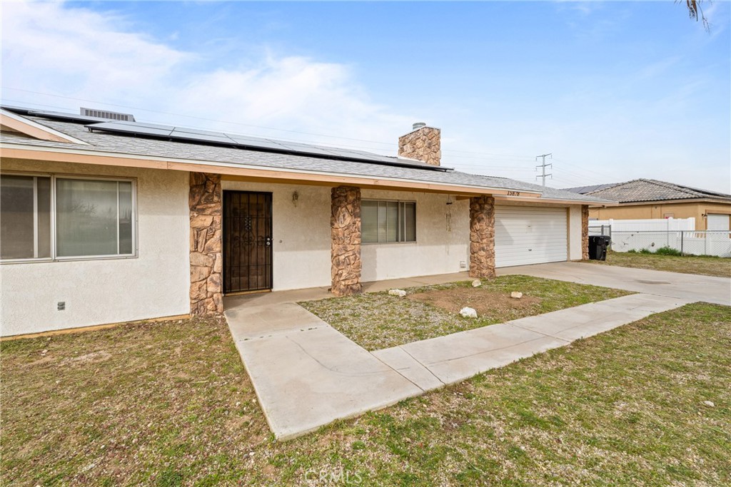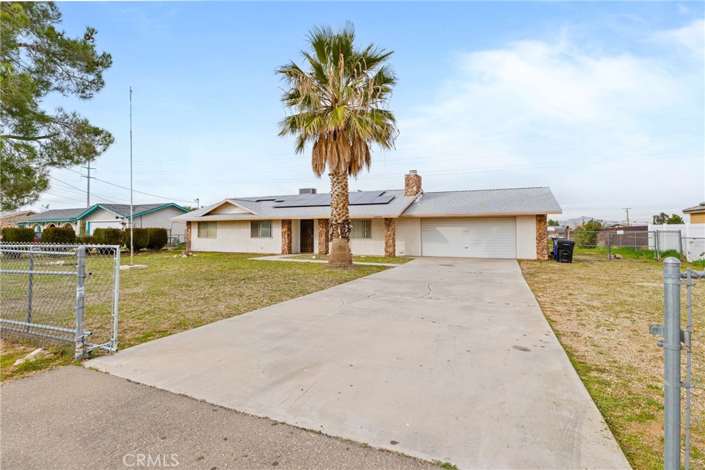 Welcome to this 3-bedroom, 2-bath pool home situated on just over half an acre in Victorville, offering space, privacy, and a versatile layout. The kitchen features newer appliances and ample cabinetry, with easy access to the formal dining room—ideal for everyday living and entertaining. Off the dining room, an enclosed sunroom provides additional living space, perfect for a home office, hobby room, or relaxing retreat. The separate family room is warm and inviting, highlighted by a fireplace for cozy evenings at home. Step outside to enjoy a private backyard with a swimming pool, along with fully fenced and cross-fenced grounds—ideal for pets, RV parking, gardening, or future projects. Solar with backup battery. With its generous lot size and classic floor plan, this home offers solid potential both inside and out.