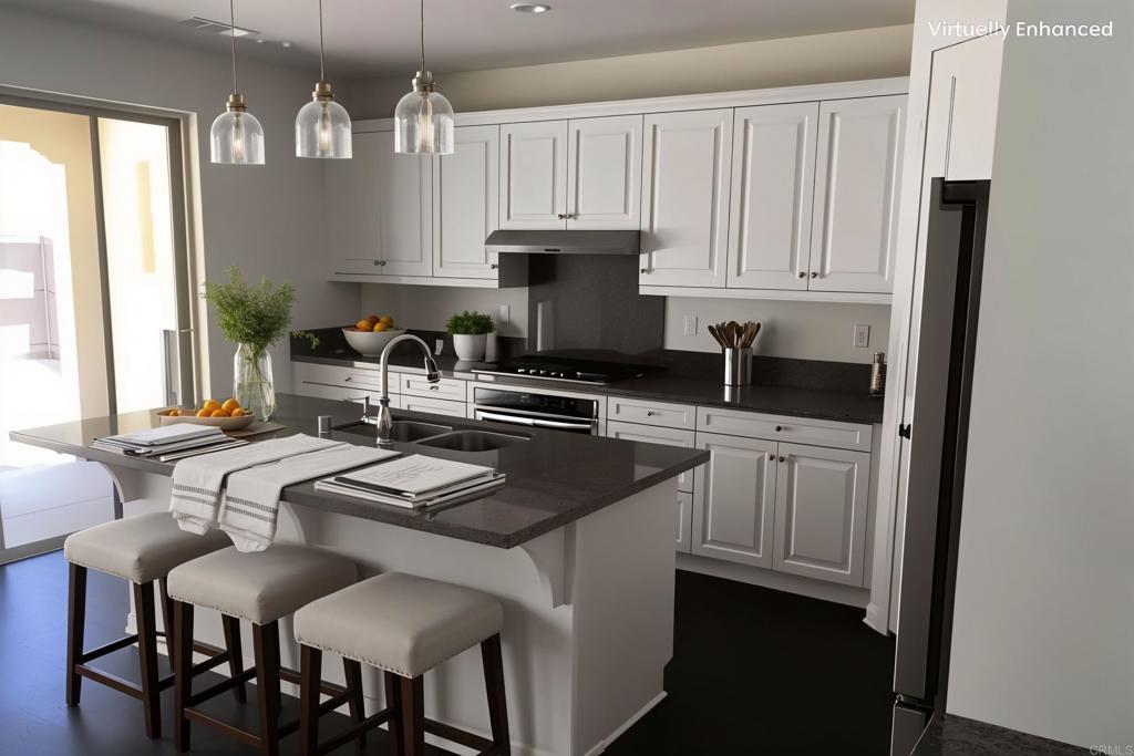 Enjoy Del Sur living across from a park with swimming pool. Great room floorplan maximizes the indoor outdoor lifestyle including a covered patio with outdoor fireplace. Gourmet kitchen with walk-in pantry, quartz counters, tons of cabinet space, and large island with casual dining seating for 4. Hardwood floors add to the elegance. Convenient downstairs bedroom and full bathroom for guests, home office, or playroom. Upstairs is a versatile loft for extra living space, game room, work from home, or ? 2 car attached garage. Central heat and air with a 7kW solar system plus wall charger for an EV. Awesome schools, shopping, and parks nearby. Small pet considered