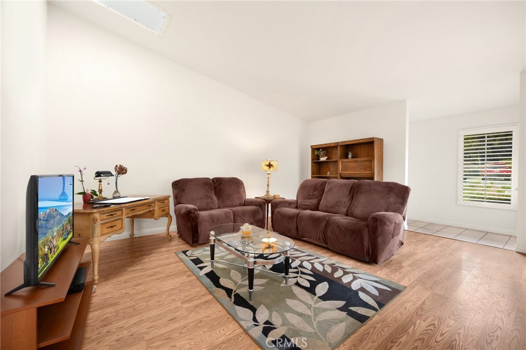 Welcome home! This stunning single story end unit home with no one above or below you is move-in ready and is a perfect blend of comfort and elegance in the highly sought-after La Mirada Landmark Adult Active 55 + community. With 1132 square feet of interior space this beautiful home features 2 spacious bedrooms, and two bathrooms. This unit has an abundant amount of parking right in front of the home making it very easy for the homeowner and guests. The home is freshly painted and has a newer HVAC unit that was installed in 2021. As you enter the home you will notice the soaring cathedral ceilings and open floor plan making the home so light and bright. The kitchen has lovely granite countertops, the bathrooms have beautiful upgraded cabinetry, and the master bathroom has an upgraded walk in bathtub for extra comfort and safety. The large sliding door opens to a private patio, perfect for enjoying your morning coffee or hosting small gatherings. This home is part of a vibrant community known for its resort-style amenities, including a clubhouse, activity center, spa, swimming pool, fitness center, tennis courts, library, and a monthly calendar of fun events! This HOA covers trash, interior and exterior water, front yard landscaping all exterior maintenance and so much more! The beautifully landscaped grounds are meticulously maintained, offering a serene atmosphere with the added peace of mind of a 24-hour, seven days a week security guard. This unit has one of the most desirable locations in the community with easy parking and a single car garage. Conveniently located in the heart of La Mirada across from the La Mirada Golf Course, La Mirada Theater, H-Mart, and great restaurants and shopping. Don’t miss your chance to live in this highly coveted community!