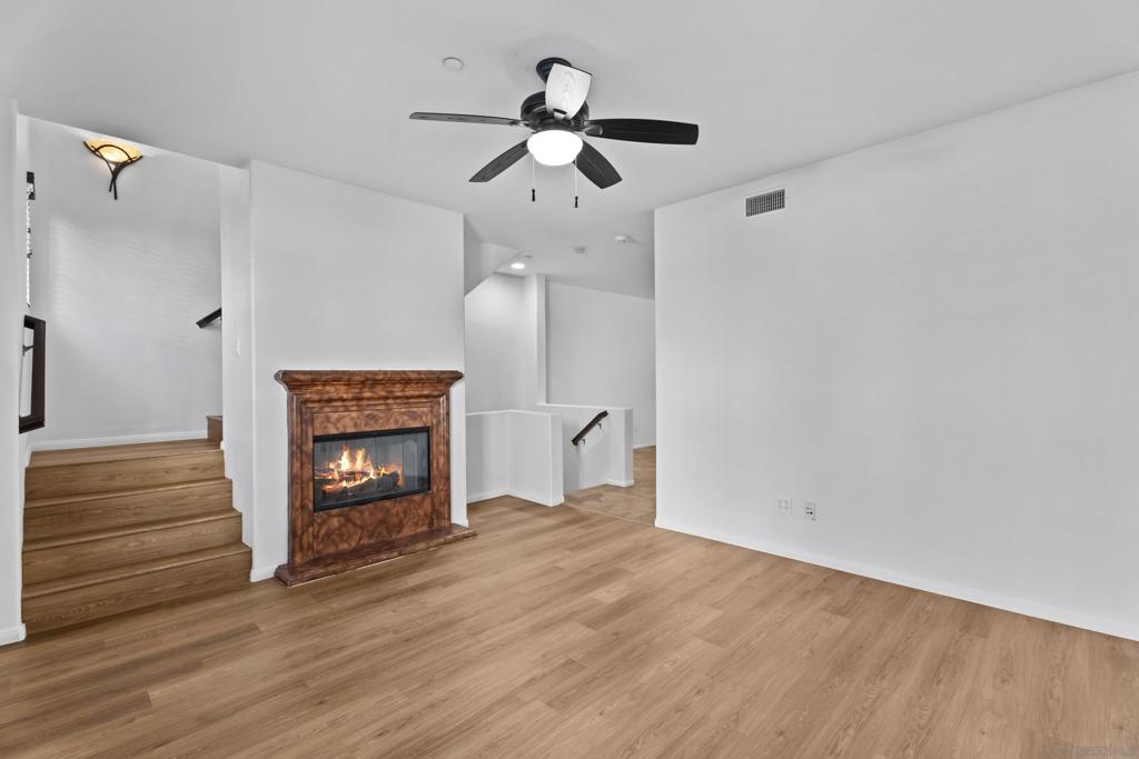 Experience elevated living in this stunning two-bedroom residence with a versatile den—perfect as a private office or third bedroom. The thoughtfully designed layout features the additional room on the first floor, offering flexibility and convenience. Elegant wood-look flooring flows throughout, complemented by fresh designer white paint that enhances the home’s contemporary charm. Enjoy a spacious chef’s kitchen with a center island, an inviting living room with a cozy fireplace, and seamless indoor-outdoor living through your private ground-level patio. This home includes a two-car attached garage, upgraded washer and dryer, central air conditioning and heating, faux wood blinds, and a walk-in closet in the luxurious primary suite. Ideally located just steps from Otay Ranch Town Center and adjacent to Vons, this residence offers unparalleled convenience. The community features a resort-style swimming pool and ample guest parking—everything you need for a refined, effortless lifestyle. A rare blend of sophistication, comfort, and prime location—this property truly has it all.