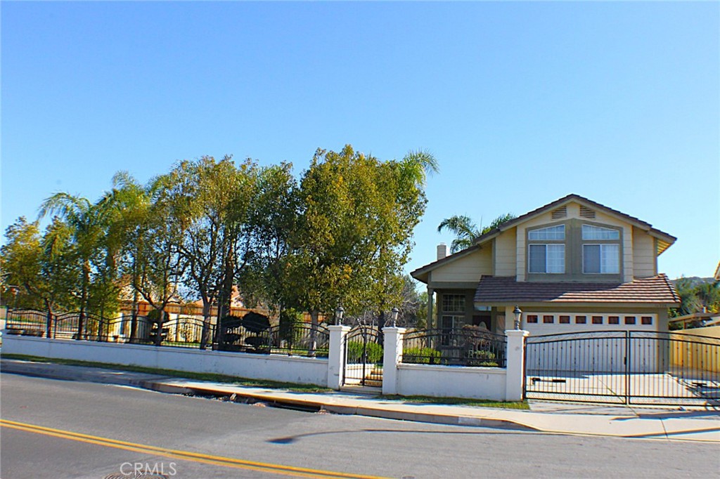 Former model home on a premium corner lot with private gated access builder features — this upgraded residence offers space, function, and curb appeal in one complete package. The property is fully enclosed with a perimeter gate and features an automatic, remote-controlled vehicle gate that provides secure access to the driveway and garage — a rare and highly desirable feature for privacy, parking flexibility, and added security. Inside, the home showcases vaulted ceilings and an open, light-filled layout. The main level has been updated with modern luxury vinyl plank flooring, while the upstairs features comfortable carpet throughout. The family room includes a fireplace and flows directly into the kitchen area, creating a practical and inviting living space. The kitchen is finished with granite countertops and stainless steel appliances, offering both durability and contemporary style. Functional layout details include: Half bathroom downstairs for guests Two full bathrooms upstairs Spacious primary suite with a private balcony Former model home design features and upgraded finishes Situated on a large corner lot with walking trails directly behind the property, the location supports both privacy and outdoor lifestyle access — ideal for walking, running, and enjoying open space without rear neighbors. Close to schools, shopping and dining — a standout opportunity in Moreno Valley.