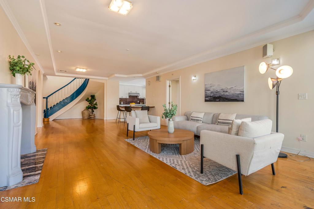First Time on Market – Luxury Townhome in the Heart of Westwood! This stunning townhome is offered to purchase for the very first time. Nestled on one of the most beautiful tree-lined streets in the area, this impressive townhome sits on the 3rd floor of the exclusive Mayflower Villas, offering gorgeous treetop and city views. With over 2,800 sqft of living space and a massive wraparound balcony, natural sunlight floods every room through large windows and French doors. Elegant curves and high-end finishes define the interior–from the custom kitchen cabinetry, Thermador appliances, and multiple marble fireplaces, to the sculptural staircase that makes a true architectural statement. The main level features a light, neutral interior with hardwood floors throughout, a spacious bedroom with en suite bath, and a fantastic floorplan that includes dual fireplaces in both the family and living rooms, a formal dining room, and powder bath. The gourmet kitchen offers two Sub-Zero refrigerators, an island with seating, a breakfast bar, walk-in pantry, and a full wall of windows with direct access to your wraparound balcony. Upstairs, a versatile loft area is perfect for work or play, complemented by a convenient laundry room and oversized skylights. Two guest bedrooms are generously sized, each with en suite baths and walk-in closets. The primary suite is expansive, featuring a marble fireplace, French doors leading to a private upper balcony, and a luxurious bath with marble finishes, dual vanities, a steam shower, and sunken tub. The oversized walk-in closet includes custom organizers. Additional highlights include American Vision windows and doors, a $10,000 custom kabob grill, fresh interior paint, and four garage parking spaces. With only 10 townhomes in the building, Mayflower Villas offers a private, controlled-access lobby with elevator, a meeting room, newly remodeled gym, pool, and multiple outdoor gathering areas. Low HOA dues. A rare opportunity to own a spacious and stylish townhome in one of Westwood’s most desirable addresses.