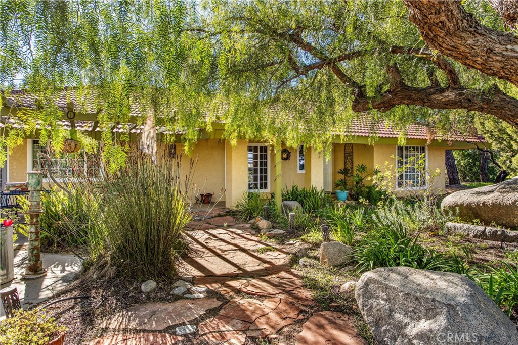 Welcome to Rocky Ranch – a rare and private retreat designed for those who value land, independence, and intentional living. Tucked away on just under 5 fully fenced acres, this exceptional property offers a warm and inviting 4-bed, 2-bath custom home spanning 2,664 sq. ft., complemented by a beautiful backyard patio, huge barn and thoughtfully developed grounds. Enter the home through the front door to a welcoming layout that blends comfort and character. To the left, a sunken living room features a large window overlooking the front porch with a coat closet to the right. Moving forward, the kitchen on the left showcases stainless steel appliances, a commercial-grade gas stove and oven ideal for large gatherings, custom 18×18 travertine flooring, butcher block countertops, and counter seating for 4— perfect for both preparation and serving. The open-concept kitchen flows seamlessly into the dining and family room, where a cast iron wood-burning fireplace with custom brick, vaulted ceilings with fans and lighting, and double French doors lead to the backyard and expansive patio with jacuzzi. The spacious primary suite on the left offers a walk-in closet, vanity, and custom walk-in shower. Behind it is a generous bonus space that could serve as a 4th bedroom or office, complete with washer and dryer, storage, and pantry. To the right of the kitchen, 2 well-sized bedrooms share a second bath featuring a custom tub/shower, vanity, and toilet. Every space reflects thoughtful craftsmanship, warmth, and functionality — a true cottage-ranch retreat designed to support everyday living. As you step onto the back patio, you will be thrust into a world full of light and natural beauty. You will find yourself surrounded by walking trails, mature trees, established gardens, and productive landscaping because this land was developed to perform. An oversized fenced-in vegetable and herb garden with greenhouse, and an abundance of producing fruit trees support year-round growing and sustainable living, while the fully fenced acreage is ideal for horses, cattle, goats, pigs, chickens, or whatever livestock vision you bring to life. Every inch of this property reflects care, foresight, and pride of ownership. Peaceful, secluded, and incredibly functional, this is a place where life slows down, systems work, and possibilities expand. You won’t just see the value here — you’ll feel it. Truly one of a kind. Prepare to fall in love with this captivating oasis!