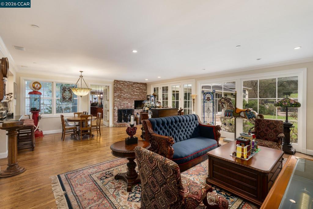 Ideally located near the entrance on one of the most coveted streets within the prestigious Diablo Country Club, this exceptional estate spans 1.44 acres of flat, park-like grounds, offering rare privacy, elegance, and resort-style living. A gated circular driveway creates commanding curb appeal, while the thoughtfully designed, predominantly single-level layout features two private wings – ideal for extended family or multigenerational living. The expansive floor plan includes two primary suites, two kitchens, two laundry rooms, an oversized great room, and a formal dining room, all enhanced by recent refinements including new carpet, sliding doors, updated systems, a backup generator, and a resurfaced pool. A four-car garage with a half bath adds exceptional functionality, while the private backyard oasis is an entertainer’s dream with an outdoor kitchen, fireplace, expansive lawn, greenhouse, and charming custom playhouse. Located near parks and recreation, within the highly acclaimed San Ramon Valley School District, and offering access to world-class golf, dining, and social amenities at Diablo Country Club, this is a rare opportunity to own a prestigious and beautifully upgraded estate.