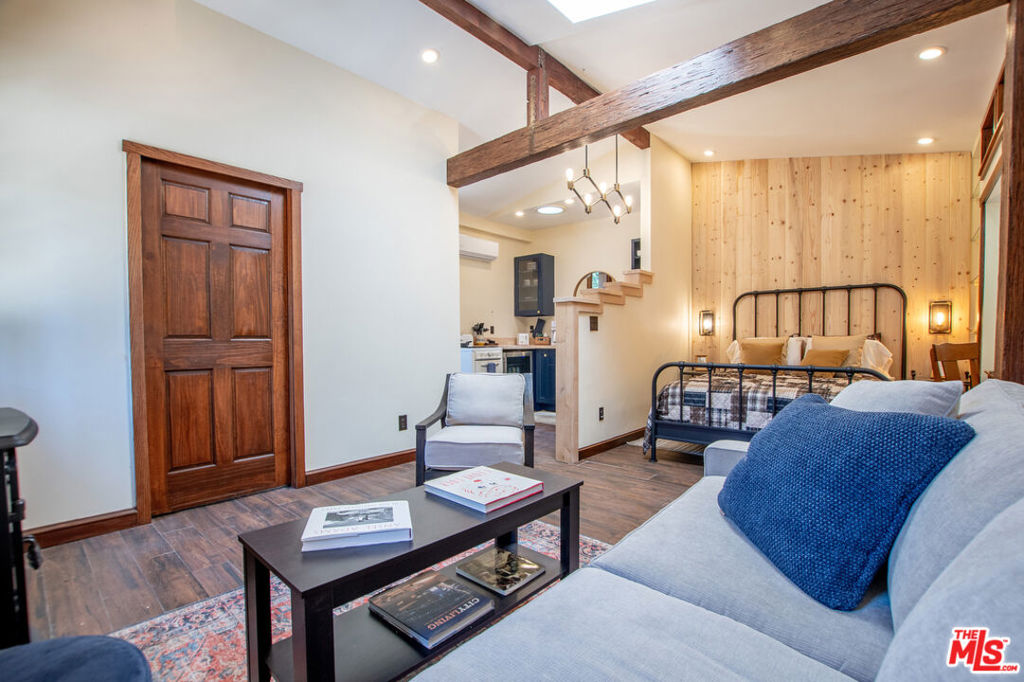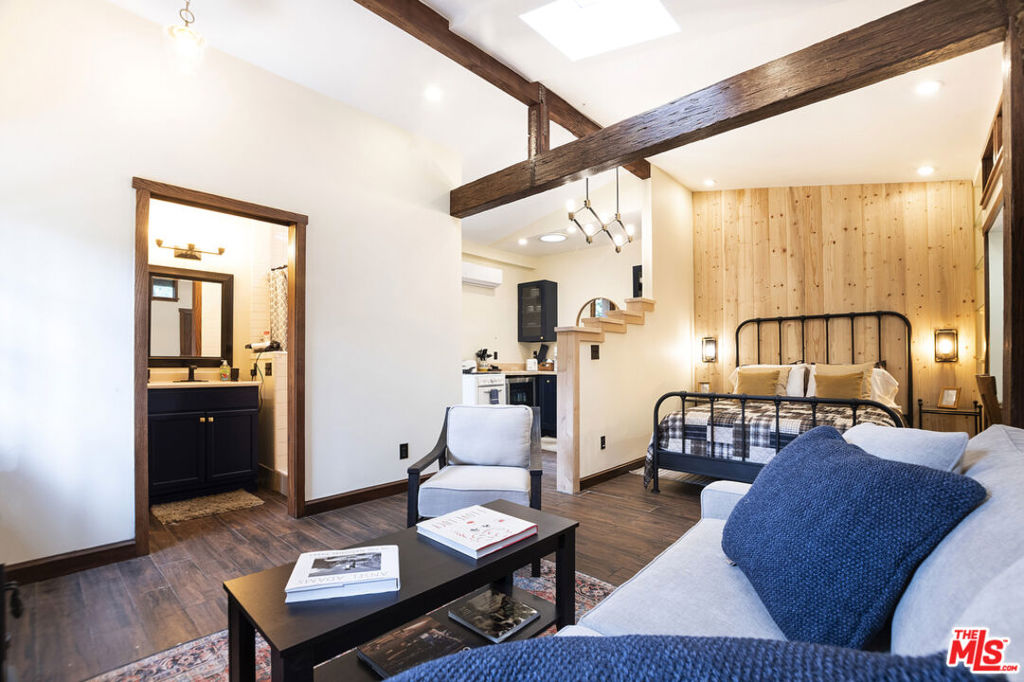 Amazing rare to find Guest House, fully furnished! Nestled behind the lush greenery of The Stanley Yosemite House in Hollywood Hills-West. Gorgeous poolside views in tranquil wooded setting in the heart of Hollywood. This hideaway offers complete privacy and seclusion, outdoor dining, and a great location on a quiet dead end street, but close to West Hollywood/Sunset strip’s restaurants and night life. The “cabin” is full of comfort and plush furnishings spacious living area, 10-foot-high ceilings, 3 skylights, flat-screen google TV , pop belly stove perfect for curling up with a good book, on a comfortable sofa. The kitchen is fully equipped with everything you need for a home cooked meal; plates to the pots, and silverware, and wood block counter tops, Plus washer/dryer combo & vintage gas stove. TV has Netflix on it for free use. The plush queen-size bed has 600 thread count sheets, soft linens, and fluffy pillows for a peaceful night’s sleep. The luxurious bathroom features a walk-in shower, fluffy towels, and designer toiletries. Walk to Sunset or take a quick 5 minute Uber to the most famous star studded restaurants on the strip, and Hollywood Blvd. Plenty of Parking in this restricted parking area. Parking permit is $32.00 for 6 months) Looking for a year but would consider 6 months or more. The property does have a shared Pool for occasional use. 2 blocks from Runyon Canyon for avid hikers! Available starting Jan 2026.