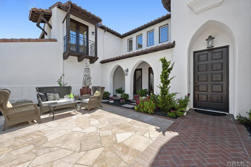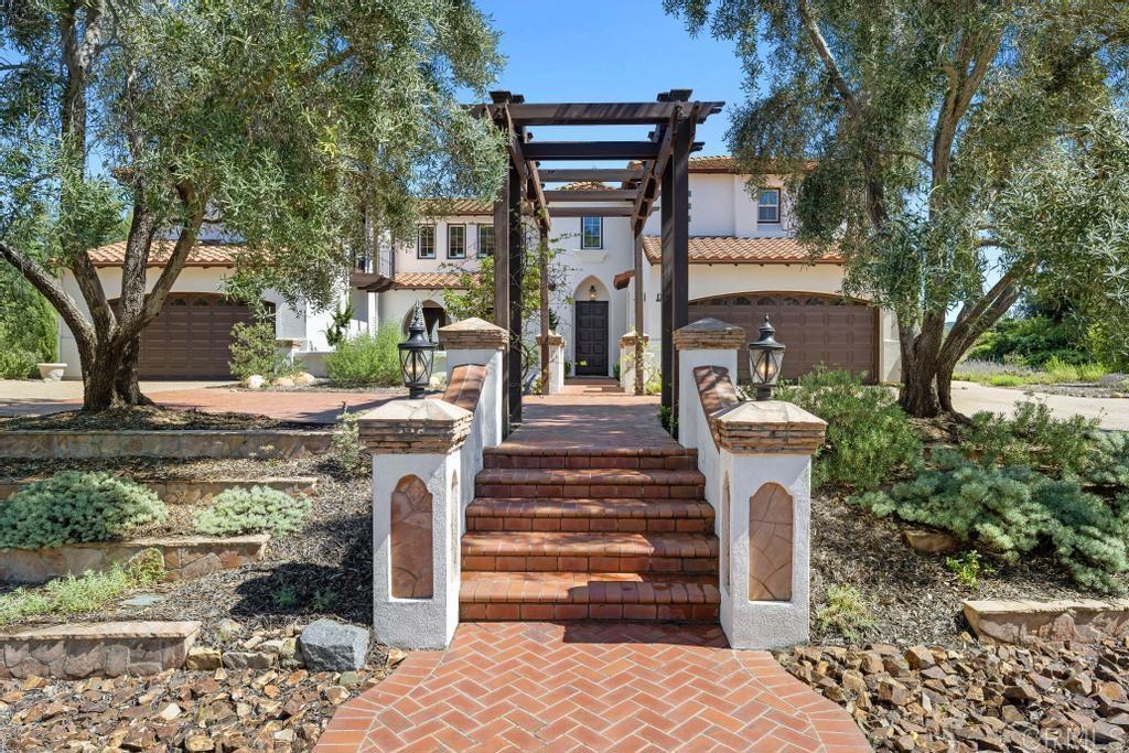 Discover luxury living in the heart of Poway! This extraordinarily elegant home sits on 2.2 acres, offering breathtaking panoramic views and unparalleled privacy within the prestigious gated community of Old Coach Collection. Nestled in serene rolling hills, this exclusive enclave provides a tranquil retreat just minutes from Poway’s top-rated schools, fine dining, shopping, and the renowned Maderas Golf Club. From the moment you step through the grand entrance, you’re greeted by soaring ceilings, designer finishes, and expansive windows that flood the home with natural light and frame the stunning vistas. The open-concept design seamlessly connects the kitchen, great room, dining area, and living room, creating the perfect setting for effortless entertaining and enjoying the quintessential California indoor-outdoor lifestyle. The chef’s kitchen is a masterpiece, featuring Verde Tunas granite countertops, custom cabinetry, and diagonal-laid 2 1/4″ walnut plank flooring. The home offers four ensuite bedrooms, including a downstairs suite with a full bath, plus an office that can easily be converted to a fifth bedroom. Luxurious bathrooms are adorned with custom Italian tile, marble, and Kohler fixtures, while upgraded sandstone fireplaces add warmth and elegance throughout. Modern conveniences abound, including a 8.19 KW solar system with two Tesla Powerwalls, a Tesla vehicle wall connector, surround sound speakers, an OnQ security system, and LED lighting with digital dimmers. The Flow Tech water filtration and anti-scale system ensure optimal water quality for the entire home. Outdoors, the property is a true private oasis. Meticulously designed, fire-safe, and low-maintenance landscaping features 320 water-wise plants, Baja Cresta rock frontage, and a river rock apron. Expansive outdoor living spaces invite you to relax and take in the views or entertain under the stars. Don’t miss this rare opportunity to own a luxurious private retreat in one of Poway’s most sought-after communities. This home perfectly combines elegance, functionality, and convenience, all just a short drive from San Diego’s finest amenities.