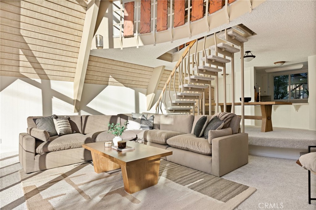 Professional photos & furniture staging coming soon! Fabulous Country Club Chalet in the Private, Gated Country Club Villas Welcome to the perfect cozy getaway adjacent to the Lake Arrowhead Country Club. This beautifully updated chalet offers two inviting bedroom suites and a dramatic wall of glass showcasing serene forest views. Enjoy a private fenced side yard complete with a relaxing hot tub, garden area, and spacious patio—ideal for children, pets, and year-round outdoor living. Inside, the home features fresh paint, new carpet, updated fixtures, and a welcoming formal entry with ample coat closets and storage. The unique raised dining room embraces retro mid-century modern architecture and blends seamlessly with the open-concept kitchen and living area. The spacious kitchen overlooks gorgeous community trees and includes a convenient mudroom with access to the laundry area and attached golf cart garage. The living room impresses with stunning two-story vaulted ceilings, a rustic stone fireplace, and floor-to-ceiling windows that bring the outdoors in. The main-level primary suite offers a walk-in bathroom with a soaking tub, plus direct access to the private patio and spa area. Upstairs, the loft-style second bedroom features its own walk-in closet and private bathroom, along with views that overlook the dramatic windows and treetops below. This sought-after gated community offers ample parking, beautifully maintained grounds, and its own private entrance to Lake Arrowhead Country Club. Home includes full lake rights to Lake Arrowhead.