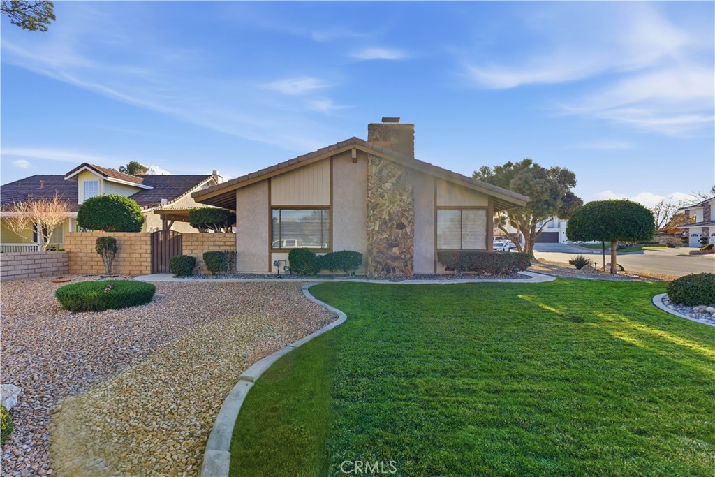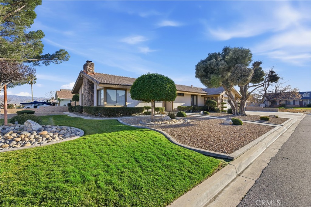 PAID SOLAR!! Welcome to this spacious and beautifully maintained home located in the desirable Spring Valley Lake community. Fully landscaped with tremendous curb appeal, this corner-lot property immediately impresses with a striking double-door entry and elegant exterior details. Inside, you’ll find gorgeous wood plank ceilings, beautiful laminate flooring, and durable tile in high-traffic areas, creating both warmth and functionality. The expansive living spaces feature large rooms and a stunning floor-to-ceiling rock fireplace that serves as a dramatic focal point. The kitchen is well-appointed with granite countertops, stainless steel appliances, and a stylish stove hood—perfect for both everyday living and entertaining. Bedrooms offer mirrored closet doors, while the primary suite includes a generous walk-in closet. Outside, enjoy a large lattice patio ideal for relaxing or hosting guests. The property is fully fenced with a combination of block wall, wrought iron, and a wooden cross fence, providing privacy and security. This exceptional home blends comfort, style, and location in one of the High Desert’s most sought-after communities.