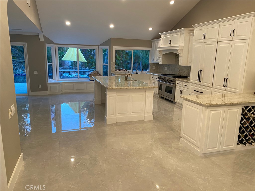 Beautifully updated single story home in a quiet Orange neighborhood featuring bright, open living spaces with vaulted ceilings, recessed lighting, and elegant stone/tile flooring throughout. The upgraded kitchen offers classic white cabinetry, generous counter space, and a center island-prefect for entertaining. Spacious living and dining area with a charming fireplace and large windows. The primary bath feels like a Spa retreat. Step outside to your private backyard oasis with pool.
