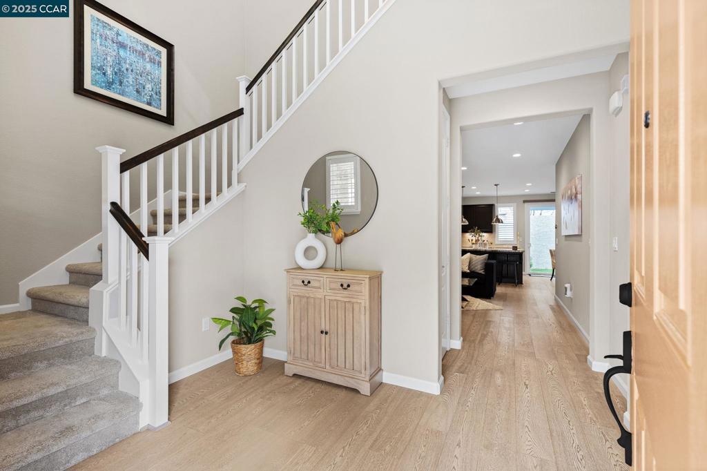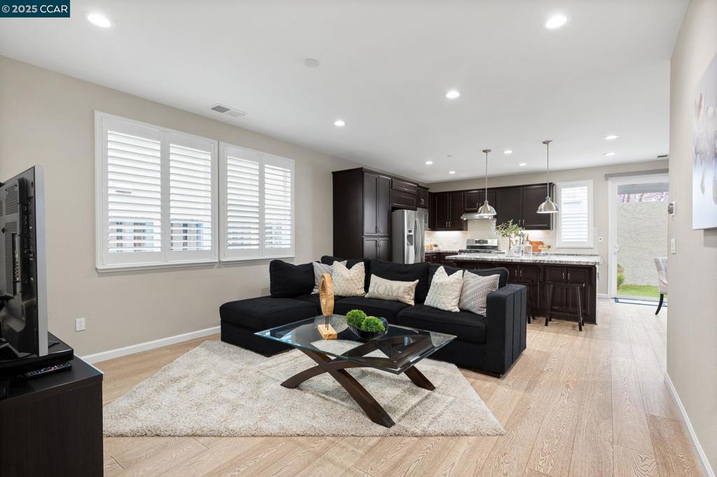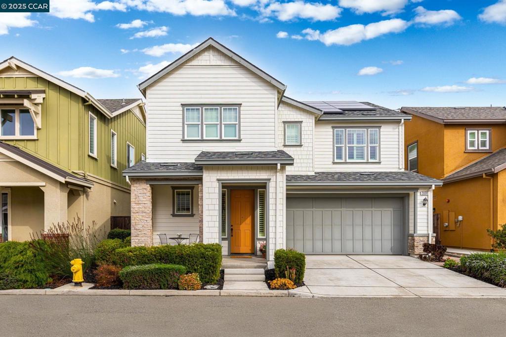 This beautiful 4-bedroom, 3-bath home is in the sought-after neighborhood of The Vines in Livermore. Designed for comfort and style, it features an open floor plan, an expansive great room, a chef’s kitchen, and a dining area with backyard access. Light and bright, the home boasts beautiful floors, custom shutters, recessed lighting, and warm tones. A bedroom and full bath are conveniently located downstairs. The modern kitchen is a chef’s dream with stainless steel appliances, a 5-burner gas range, microwave, dishwasher, refrigerator, granite countertops, tile backsplash, and a large island with pendant lighting. The dining area opens to the backyard, perfect for entertaining. The primary suite offers a spa-like bath with a soaking tub, shower bench, dual vanity, and walk-in closet. Additional features include spacious bedrooms, updated baths, and a laundry room with storage and a sink. Enjoy the inviting front porch, low-maintenance yard with a pergola, artificial turf, and pavers—ideal for relaxation. The 2-car garage includes owned solar panels, an EV charger, a Powerwall battery backup, and a tankless water heater. Conveniently located tonDowntown Livermore, shopping, dining, wineries, freeways, ACE Train, BART, and top-rated schools. Open Sat & Sun 1-4 PM