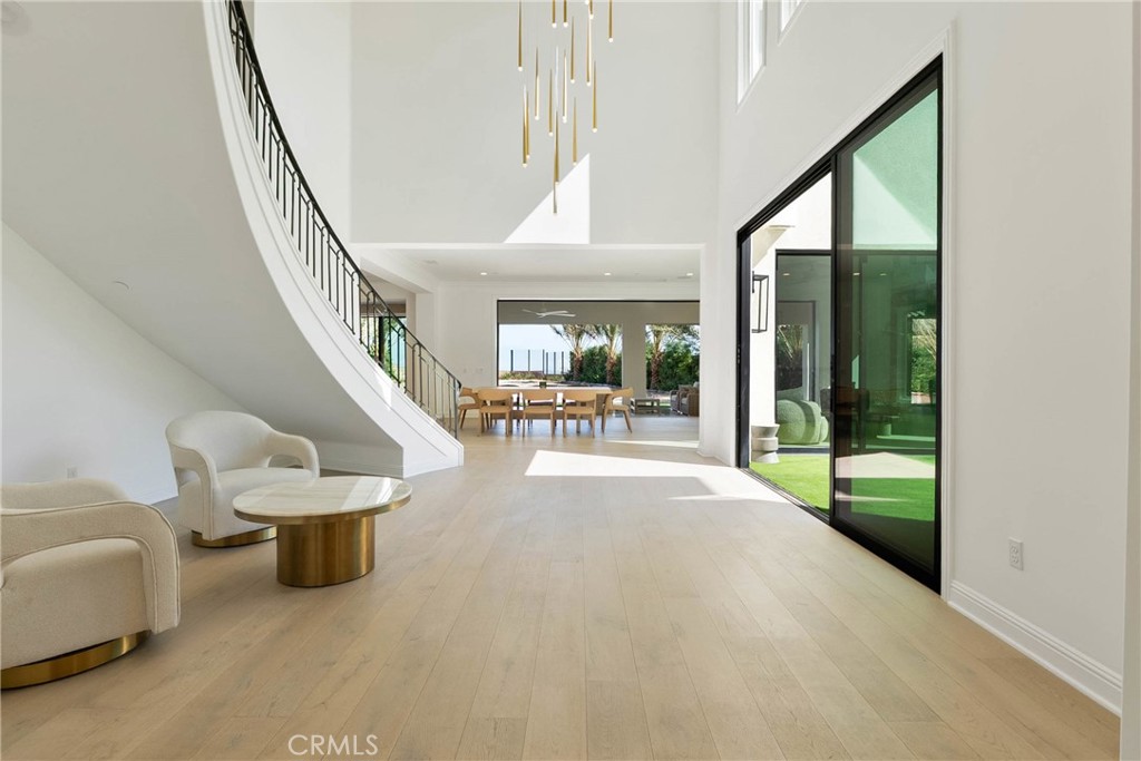 Experience luxury living in this original Palisades model home in the prestigious gated community of Westcliffe at Porter Ranch. Completed in 2021, this 5-bedroom, 6-bathroom residence sits on a rare 14,142 sq. ft. flat lot and offers some of the most breathtaking, unobstructed city and mountain views in the community. From the moment you arrive, the home impresses with Italian stonework across the driveway and entry, illuminated step lighting, and tranquil water features that set a sophisticated tone. Inside, a grand foyer with soaring ceilings and a designer chandelier frames the dramatic floating staircase and European oak hardwood floors. The open-concept design connects a spacious dining area to a chef’s kitchen with an oversized waterfall island, Sub-Zero refrigerator, Wolf appliances, Wolf coffee system, pot filler, and walk-in pantry. A sleek linear fireplace anchors the great room, while 20’ x 8’ glass pocket doors extend the living space outdoors for seamless entertaining. Upstairs, a loft-style family room separates each wing. The primary retreat serves as a true sanctuary, complete with a private balcony overlooking the San Fernando Valley, a spa-inspired bathroom with Calacatta marble counters, dual vanities, soaking tub, walk-in shower, and an oversized custom closet. Three additional en-suite bedrooms, each with large closets, complete the upper level. The backyard is both functional and inspiring, designed with brand-new turf, a covered patio with fireplace, and plenty of flat space for a pool, spa, outdoor kitchen, and more. Permitted pool plans with renderings are already in place for the next owner to create their dream outdoor oasis. Additional highlights include surround sound throughout, solar panels that are fully paid off, and a direct-access 3-car garage. This residence combines timeless Palisades craftsmanship with today’s modern comforts, a rare opportunity to own one of Porter Ranch’s most desirable homes with head-on city and mountain views.