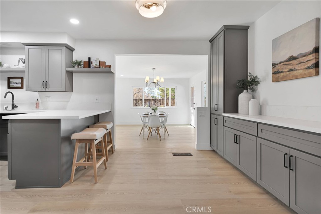 Home Fully REMODELED! ******PAID OFF SOLAR with 36 panels****** This charming 3-bedroom, 2-bath ranch-style home in Apple Valley, offers a perfect blend of comfort, space, and modern convenience. Upon entering the home, you’re greeted by a spacious and airy living room, offering plenty of natural light through large window. The open floor plan leads seamlessly into the kitchen and family room, a cozy yet roomy space perfect for movie nights, or relaxing with family. Set on nearly an acre of land, the property provides plenty of room for outdoor activities and potential for future expansion. The backyard is ideal for outdoor entertaining while enjoying the breezeway for those cozy times. With the paid solar panels installed, you’ll benefit from energy efficiency and potentially lower utility bills year-round. RENOVATIONS INCLUDE: New Septic, New Kitchen Cabinets, and New cabinets throughout the house, both bathrooms remodeled, New flooring throughout the house, all New indoor and outdoor light fixtures, New Interior and Exterior paint, all New textured interior walls and ceilings, AND ALL NEW windows.