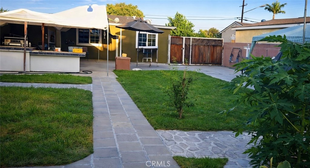 This thoughtfully refreshed home blends modern style with everyday practicality. It offers two generous bedrooms and one-and-a-half bathrooms, highlighted by tile flooring, refined molding, and fan lighting throughout the interior. The comfortable living space connects effortlessly to the open kitchen, which features shaker-style cabinetry, granite countertops, and stainless steel appliances, creating an ideal setting for cooking and entertaining. A bright and flexible garage conversion adds valuable living space and can be used as a playroom or an inviting area for gatherings. The permitted living space measures approximately 940 square feet. The roof was replaced around 6 years ago. The owner has the permits to build an ADU Outside, the property continues to impress with mature landscaping in both the front and backyard. Guava and papaya trees enhance the backyard’s character, while a charming gazebo provides a peaceful place to relax or entertain with a huge BBQ unit to bring your family to enjoy. A detached structure offers excellent storage or can function as a small office. The electric-gated rear driveway adds privacy, security, and convenient access. Situated in the desirable Lakewood community and located within the highly regarded ABC Unified School District, this home offers comfort, charm, and lasting appeal.