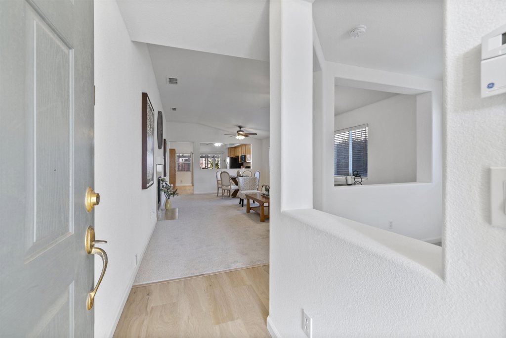 Welcome to 2237 Clock Tower Court, nestled at the end of a private, quiet cul-de-sac in the highly desirable Crossroads community of Riverbank! This beautifully updated 3-bedroom, 2-bath, 1,607 sq ft single-story home has been freshly painted with new carpeting and vinyl plank flooring throughout. Located just blocks from shopping, dining, parks, schools, and easy access to Highway 99. The home features a versatile bonus room at the front—perfect for a home office, craft room, or children’s playroom. The spacious kitchen boasts tile countertops, a gas stove, a charming built-in china cabinet, and ample storage. The open family room includes a ceiling fan and gas fireplace with ceramic tile surround, creating an inviting space for relaxation and entertaining. The private primary suite offers its own patio access, dual walk-in closets, and a luxurious bathroom with double vanity plus makeup station. Two additional bedrooms provide comfortable accommodations. All bedrooms feature ceiling fans and mounted TVs (included in sale). The laundry room includes extra storage. Additional highlights include front and back patios, low-maintenance landscaping with automatic sprinklers, and a fully finished two-car garage. Refrigerator, washer, and dryer included! Home, pest, and roof inspection