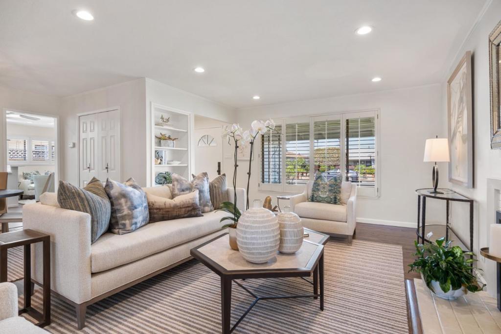 Newly remodeled in Fiesta Gardens, a neighborhood prized for its community amenities and central convenience. Just completed updates include refinished hardwood floors, new paint inside and out, remodeled baths, a modern kitchen with marble-style quartz counters and new appliances, a new roof, plus new artificial turf lawn. The single-level floor plan has 3 bedrooms and 2 baths, plus a detached office ideal for remote work, fitness, or playroom. The primary suite features dual closets and a remodeled bath, while two bedrooms share a stylish hall bath. Formal living and dining spaces are anchored by a classic fireplace and open to a large covered patio and new turf lawn. Filled with natural light from skylight, wide windows, and sliding glass doors, the entire home is bright and welcoming. The Fiesta Gardens HOA includes pool, tennis, playground, park, and a newly updated cabana. Close to Hwy 92/101, shopping, and dining, this home offers convenience and designer style.