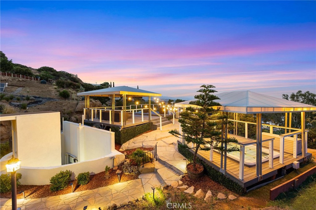 Spectacular Hillside Retreat in Roy Rogers Estates with Panoramic Views. Tucked away behind private gates and set along a scenic driveway, this exceptional property is one of Los Angeles’ most distinctive homes. Located in the prestigious Roy Rogers Estates of Chatsworth, this architectural gem is built into the hillside and surrounded by the natural beauty of the Santa Susana Mountains – offering direct access to hiking trails just steps from your front door. The home sits on an expansive 30,000 sq. ft. lot dotted with the dramatic sandstone boulders that define Chatsworth’s rugged landscape. Enjoy sweeping views of the Valley from multiple vantage points, including two covered observation decks—one featuring a private spa where you can relax and soak in the scenery. Inside, you’ll find a thoughtfully designed layout offering 4 bedrooms, 4 bathrooms and 2,553 sq. ft. of beautifully designed living space, the home features an open-concept layout with a kitchen at its heart—complete with a large island, walk-in pantry, and plenty of space for gathering. A stylish wet bar with a wine refrigerator makes entertaining effortless, while two front-facing balconies offer tranquil Valley views. The accompanying living room boasts a fireplace to relax and take in the surrounding landscape. The spacious primary suite includes a cozy fireplace, a walk-in closet, and a luxurious ensuite bathroom with a soaking tub and separate shower. Additionally, the property features an exterior elevator for easy access to the upper level of the backyard, a spacious 3-car garage, and a fully paid solar energy system. With its blend of seclusion, natural beauty, and modern comforts, this property offers a truly rare opportunity to own a private hillside retreat in one of L.A.’s most coveted hidden enclaves.