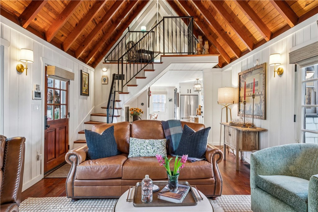 A MUST SEE in the coveted Palisades area! Exquisite, designer inspired and completely remodeled 1932 vintage cottage. Thoughtfully blends modern conveniences with timeless charm and authentic details. Enjoy level access to the home from the large, multi-car driveway onto the new deck and a warm, welcoming entry. The striking great room boasts an original, refurbished, locally sourced granite fireplace soaring two stories and includes a new wood-burning insert. Original, refurbished Douglas Fir hard wood floors add soul and character while vaulted beamed ceilings create a majestic, spacious vibe. A reconfigured floor plan provides an open-concept, seamless flow throughout the home. Awaken your inner chef in the upscale custom kitchen, with all new appliances and designer finishes including a Wolf professional range, while serving guests in the adjacent dining room. This main level offers the large ensuite primary bedroom and spa-like bathroom, and includes a gas log river rock fireplace and walk-in closet, as well as a secondary bedroom and adjacent full bathroom. Enjoy the convenience of an interior, first floor laundry room with new appliances and storage. Upstairs, overlooking the living room, you will find a romantic bonus/flex space currently utilized as a spare sleeping area and home office. Also, upstairs you will find the 2nd of 2 master ensuites which can be a separate retreat area. The property has a rare, oversized insulated and drywalled 1-car garage, excellent for your vehicle along with plenty of room leftover for a workshop and storage. The professionally designed landscape includes drip irrigation, a full planting pallet, and dogwood trees creating a lush mountain garden bursting into life in the Spring. You’ll find serenity in the fenced back yard with a lovely bonus “she-shed” with sink. New smart home features are incorporated throughout the home. Other upgrades include a new electrical panel, full alarm system and cameras, new A/C, a carefree whole-house 18kw Generac generator, new plumbing and electrical, designer finishes throughout, interior & exterior paint, new carpet in bedrooms, window replacements, and more! Conveniently located across the street from the local favorite Mountain Coffee, along with other dining, shopping and services – and you have Lake Rights! This home is on the short list for the 2026 Lake Arrowhead Home Tour and is not to be missed, come see for yourself! View by appointment only.