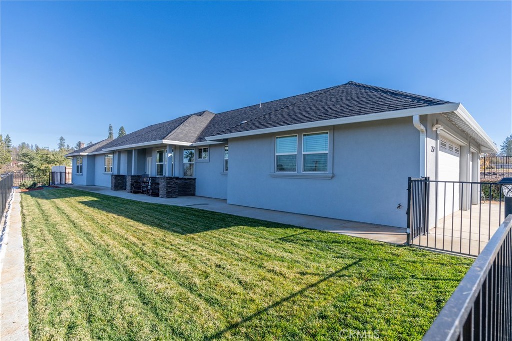 Stunning 3 bedroom, 3 bathroom custom-built home with over ¾ of an acre of land, in one of Paradise’s most sought-after westside neighborhoods! The house is on a .41-acre lot at 257 Tranquil Drive on the corner of Redbud and Tranquil. The 2nd adjoining lot is a .36-acre lot at 262 Rose Lane on the corner of Redbud and Rose, and has a current and active account with Paradise Irrigation District (PID). Built in 2020 by local builder Anderson Brothers Corp, this home is stylish, warm and welcoming, with an open floor plan, vaulted ceilings, and a cozy fireplace in the living room. The gourmet kitchen is designed for those who love to cook and entertain. It features custom tile backsplash, KitchenAid stainless-steel appliances, granite countertops, a large walk-in pantry, and double ovens. The open floor plan also features a separate dining room area. From the living room, you can step outside onto your private back patio, a perfect outdoor space that creates an inviting atmosphere for relaxation or entertainment, and it is landscaped with flowering perennials and mandarin, tangelo, and grapefruit trees. All three citrus trees produce fruit. There is also a front porch with a commanding view of the neighborhood and beautiful skylines. This property offers the ideal blend of privacy, views, and accessibility. The primary bedroom is spacious and has a private view of the backyard. It features a walk-in closet and an en suite bathroom with custom tile and a jetted tub. The other bedrooms are good-sized, with carpeting and walk-in closets. The bathrooms all have custom tile. Laminate flooring is throughout most of the house for easy maintenance. There is a bonus room that can be used as an office or den. This home also features HVAC, an on-demand water heater, and a whole-house water filtration system, a three-car garage, offering ample space for vehicles and storage, and low-maintenance mature landscaping with an automated drip system set on timers. Concrete patios, sidewalks and gravel surround the home. There is also plenty of off-street parking for you & guests. This property has a ton of potential for gardening, and plenty of room for all your toys. The yard is fully fenced with a sturdy, low maintenance metal fence, as is a second side yard area on the west side. This home is a perfect blend of design, comfort, and functionality. Schedule your personal tour and don’t miss the opportunity to make this exceptional property your home!