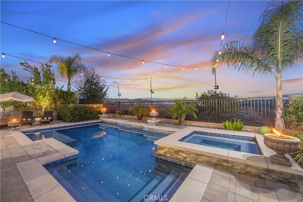 Welcome to this Stunning River Village Pool Home, beautifully Elevated to capture Serene Riverbed Views and Sparkling City Lights. Thoughtfully Upgraded throughout, the Home features Elegant Quartz & Granite Countertops, Crown Moldings, Custom shutters, Recessed lighting, Upgraded carpeting, and Engineered Wood flooring, all Complimenting a Light, Bright Open floor plan designed for both Everyday Living and Entertaining. The Main level offers a True Gourmet kitchen with a Walk-in Pantry, Double Islands, Beverage Center, Stainless Steel appliances, and Abundant storage opening to a Spacious Great Room-Family Room with a Cozy Fireplace and Breathtaking Views of the Riverbed. A Formal Living Room adds Refined Entertaining space, while a dedicated Office and Private bedroom with an En-suite Bathroom provide Flexibility for Multigenerational Living. Upstairs the expansive Primary Retreat is a private Sanctuary, complete with a Beverage Center, Coffee Bar, Office area, Luxurious Bedroom and Spa Inspired Bathroom. Additional Highlights Include a Large Laundry Room with Plentiful Storage Capabilities, Spacious Loft, a Bedroom with En-suite Bathroom, Two Generously Sized Guest Bedrooms and a Full Bathroom which includes Dual Vanities, Quartz Counters and a Dual Shower Head. All Bedrooms are Oversized offering Comfort and Versatility throughout. Step Outside to your Resort-Style Outdoor Retreat, featuring a Built-in Barbeque, Pool and Spa with Waterfall, Dramatic Fire Bowls, a Fire table and a Covered Patio with Fireplace and TV – Perfect for year round Enjoyment. Beautiful Pavers enhance the backyard, where you can Relax in total privacy with no neighbors behind. Ideally Located at River Village in the Heart of Santa Clarita, this Exceptional Home is just moments from Premier Shopping, Dining and Entertainment- Offering Luxury Living in an Unbeatable Setting. Completing this Exceptional Home are a Generous 3 Car Garage, an Oversized Full Length Storage Closet beneath the Staircase, and Energy Efficient Tankless Water Heaters, and the Backyard Retreat has a Lemon, Lime and Blood Orange Tree.