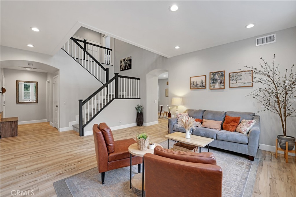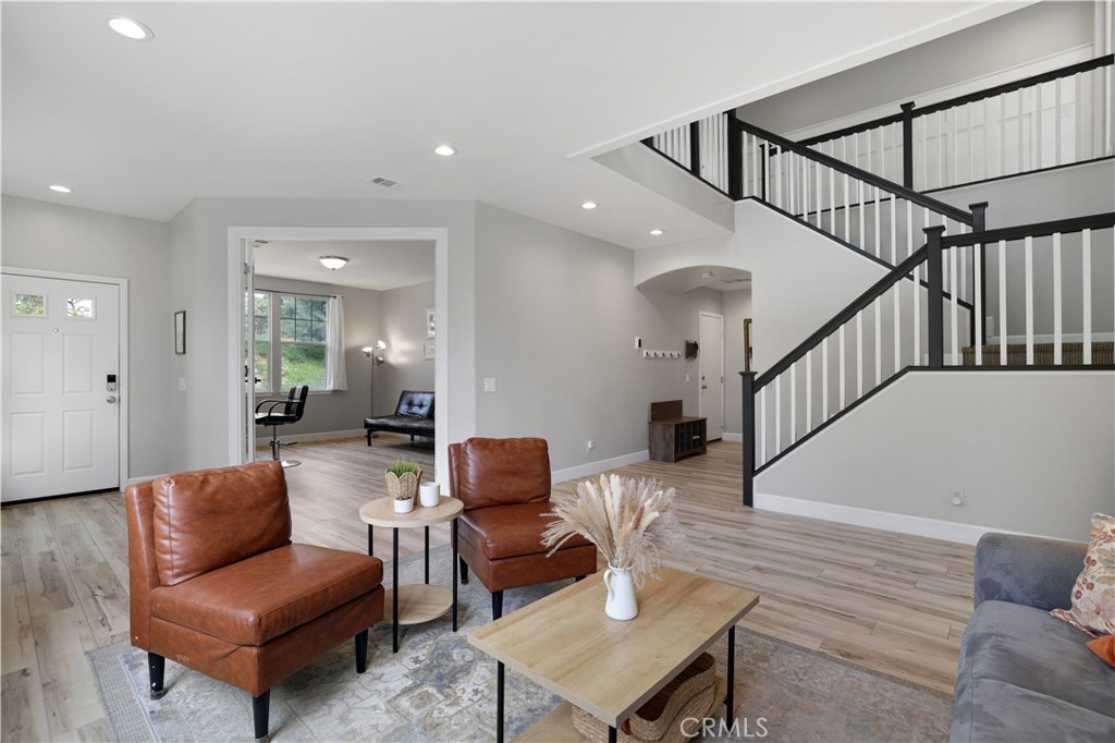 This immaculate North Lake STUNNER has been beautifully updated and sits on a corner lot in a welcoming cul-de-sac street with OWNED SOLAR! It can also be sold almost fully FURNISHED! The exterior of the home has just been freshly painted and boasts nearly 3,000 sf of light and bright living space featuring 4 bedrooms, 3 FULL bathrooms, a bonus room/office, loft, office nook, and 3 car tandem-garage. You have a downstairs bonus room/office with glass French doors currently used as a salon with its own sink and could easily be converted to a 5th bedroom, which would be convenient with a full bathroom downstairs. The living room flows seamlessly into your open concept kitchen which opens up to the separate family room featuring beautiful built-in shelving and a fireplace adding the perfect touch to the home’s coziness and comfort. Your kitchen features granite countertops, a center island, elegant two-tone cabinetry with champagne bronze hardware, a gas stovetop, range hood, microwave, oven, pantry, and a stainless steel fridge included in the sale. Head upstairs where you have a spacious loft with ceiling projector and screen, a dedicated office nook, laundry room, all 4 bedrooms, and 2 more full bathrooms. Your primary suite has high ceilings, a BALCONY to soak in beautiful sunset views, and double barn doors to a very spacious bathroom with a remodeled walk-in shower, soaking tub, spacious walk-in closet, and double sink vanity with separate make-up station. Your laundry room is conveniently located upstairs with its own sink and washer/dryer included. Your backyard features a covered patio, plenty of grass, a playground, spacious side yard, and views! The HOA amenities include a clubhouse, swimming pool and spa, basketball court, picnic area, playground, and large grass field. Also nearby is the renowned Castaic Lake, Castaic Sports Complex, Castaic Aquatic Center, and plenty of restaurants, strip malls, and award-winning schools. Schedule your showing to see this rare gem before it’s gone!