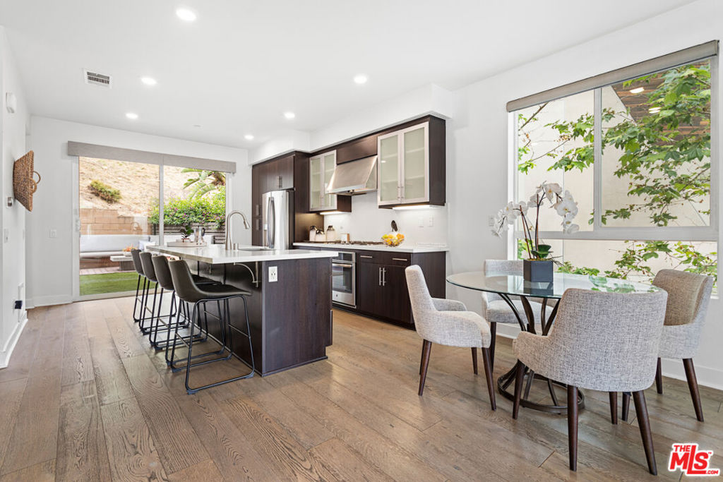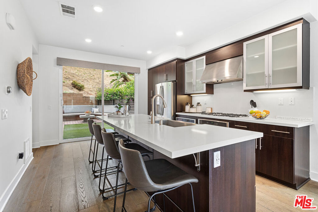 Welcome to the premier gated community in the Hollywood Hills and its finest residence. This turnkey 3-bedroom, 3.5-bath multi-level end unit is flooded with natural light from three exposures, a rare privilege shared by only two homes in the community.The main level features an open-concept kitchen thoughtfully designed with custom cabinetry, Caesarstone countertops, and top-of-the-line stainless steel appliances. This level also includes a guest bath and a spacious living area with “walls of windows” and large sliding doors that open to your backyard oasis, one of the largest in the community. This upgraded outdoor space is ideal for entertaining and includes custom built-in seating and a fully equipped BBQ kitchen surrounded by nature and the greenery of the hills.Upstairs are two large en-suite bedrooms, including the primary suite with lofted ceilings. Your primary bedroom features an incredible primary bath featuring dual sinks, oversized shower and an oversized walk in closet. On the entry level, the home offers an additional en-suite guest bedroom along with a private two-car garage.Built in 2015, the home is equipped with smart-home features including a Nexia and Ring automated system, programmable thermostat, energy-efficient lighting, tankless water heater, high efficiency Washer/Dryer, insulated air ducts, and high-performance windows with push-button Hunter Douglas automated blinds backed by a lifetime warranty.Ideally located near the Hollywood Bowl and Runyon Canyon, and only a minutes to the valley, this home offers an exceptional balance of privacy, convenience, and elevated city living. Whether you are looking for your new primary residence or looking to find a rental property that will fetch a premium, this has it all.