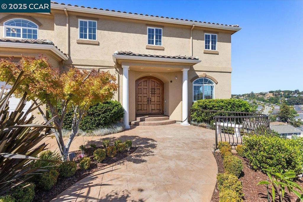 NEW PRICE!!! Luxury Living w/Sweeping Panoramic Views & Multigenerational Comfort in Exclusive Gated Community. Experience elevated living in this stunning 5-bed, 4-bath custom-built home, showcasing panoramic views from one of Castro Valley’s most prestigious gated enclaves. Perched on a hilltop among 11 custom residences, this home offers 5,200 sq. ft. of thoughtfully designed space—blending functionality, craftsmanship & scenic beauty. Gorgeous double door opens to foyer flooded w/natural light. A private elevator connects both levels for seamless access. Upstairs you will find a large primary w/spa-like bathroom & fireplace. Secondary en-suite plus 2 additional rooms, full hall bathroom & laundry. Downstairs, you will find a dedicated home office w/full bath, adding flexibility as a 5th bedroom, ideal for multi-gen living or extended guests. Gourmet kitchen feats. top-tier appliances, island & ample counter space—perfect for meal prep & festive gatherings. The spacious lower level offers opp. for a 3rd living space, bar area or playroom. Outside, enjoy mature citrus trees & a peaceful backyard w/turf framed by breathtaking hilltop vistas. Oversized tandem three-car garage w/extra-deep storage. Top-rated schools, markets, & major commuter route (I-580). Open Sun 10/19 1:30-4