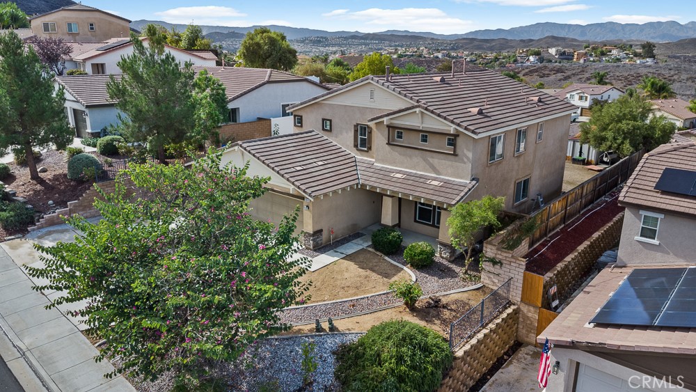Beautiful 4-Bedroom Home with 33 Fully PAID-OFF Solar Panels in Highly Desirable Canyon Heights! Welcome to this stunning two-story home, perfectly situated on a quiet cul-de-sac in the sought-after Canyon Heights community of Menifee. Boasting 2,883 sq ft of thoughtfully designed living space on an 8,276 sq ft lot, this home offers 4 bedrooms, a main-floor bonus room that can easily serve as a 5th bedroom, 2 full bathrooms and an half bathroom on the main level, and an upstairs loft—ideal for everyday comfort and versatile living. This property features a fully paid-off solar panel system, consisting of 33 high-efficiency panels approx. 350 watts each This impressive setup helps reduce monthly energy costs, supports environmentally friendly living, and enhances overall property value. The new owner will enjoy immediate energy benefits, long-term efficiency, and increased independence from rising utility rates. Step inside to an inviting open-concept layout where the spacious kitchen takes center stage. Featuring a large granite island, custom backsplash, abundant cabinetry, and generous prep space, this kitchen is perfect for the home chef and effortless entertaining. The seamless flow into the living and dining areas creates a warm, connected environment for gatherings of any size. The curb appeal is exceptional, highlighted by a beautifully landscaped front yard and a 3-car garage with enhanced functionality. One single-car bay has been enclosed for additional usable space and includes a 240-V EV charger—a valuable upgrade for electric vehicle owners. The backyard is large, private, and flat, with no rear neighbors and peaceful neighborhood views—an ideal outdoor space for relaxation, entertaining, or future customization such as a pool, outdoor kitchen, or garden. Located within walking distance to Quail Valley Elementary School, this move-in-ready home is perfect for families. Canyon Heights is a well-established community of only 394 homes, known for its low taxes, quiet atmosphere, and strong pride of ownership. Don’t miss this rare opportunity to own a highly upgraded home with PAID-OFF solar in one of Menifee’s most desirable neighborhoods!