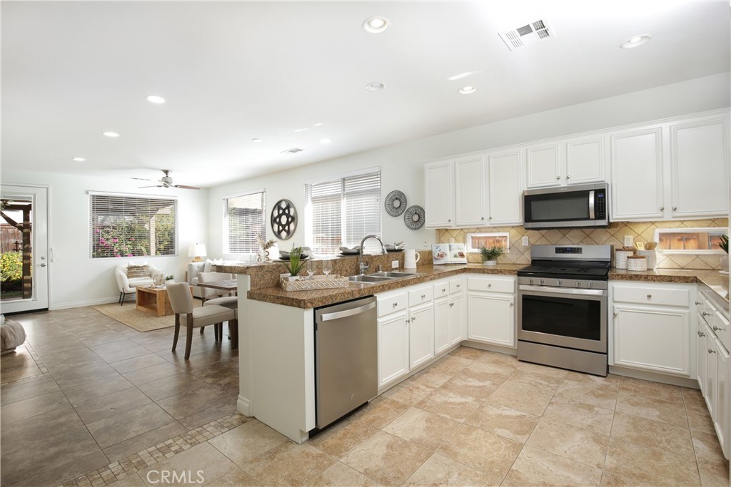 A Great SINGLE STORY, 4 bedroom, 3 bath home in the community of Sierra Ridge! NO HOA!! An open floor plan provides convenient living with the kitchen, dining area and living room with fireplace in a GREAT ROOM. Recently upgraded kitchen with granite countertops, breakfast bar, stainless steel appliances, recessed lighting and a large pantry. Primary suite includes a spa-like, large bath with soaking tub, separate shower and walk-in closet. Front bedroom and 3/4 bath is perfect for guests, intergenerational households or a quiet office. Inside laundry room with extra storage. Central Air Conditioning. Newly added Solar. Attached 2 car garage. Close to Heritage High School, shopping and dining.