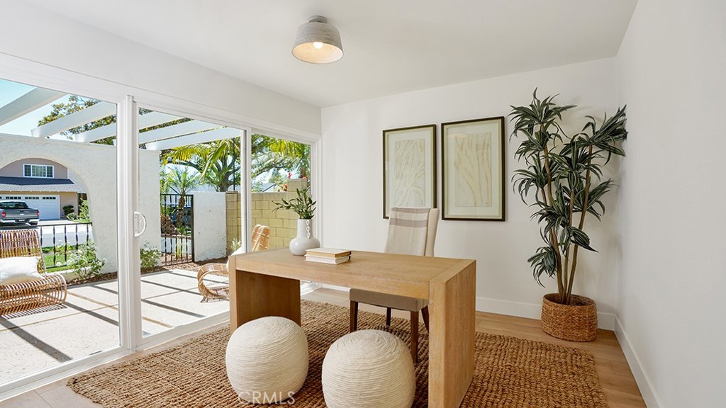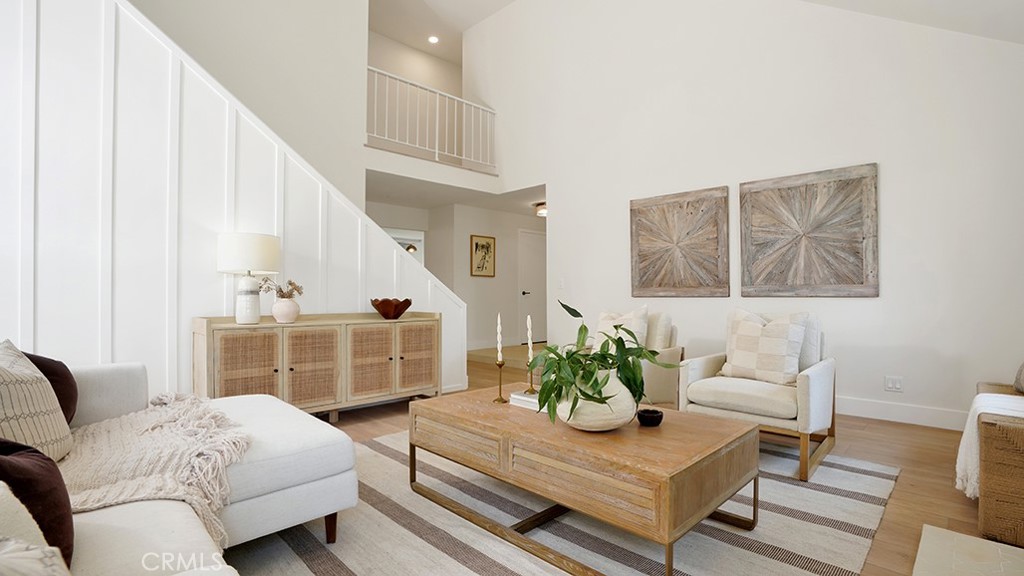 Welcome to this beautifully remodeled home where modern comfort meets timeless style. Bathed in natural light and finished with a warm neutral palette, this thoughtfully designed residence offers a seamless flow between living, dining, and work spaces—perfect for today’s lifestyle. Step inside to soaring vaulted ceilings, exposed beams, and a striking tile-clad fireplace anchoring the bright and airy living room. Do NOT miss the HIDDEN room behind the feature wall under the stairs The open-concept floor plan extends to an inviting dining area with its own fireplace and adjacent dry bar, ideal for entertaining. The remodeled kitchen features clean lines, sleek hardware, and ample cabinetry, with views of a private courtyard perfect for morning coffee. A spacious downstairs room with floor-to-ceiling windows opens directly to the patio, creating an ideal work-from-home sanctuary. Upstairs, tranquil bedrooms offer generous proportions and abundant light. The bathrooms have been tastefully updated with modern vanities, designer tilework, and stylish fixtures, creating spa-like retreats throughout the home. Additional upgrades include a brand-new water heater, dual-pane windows, and updated lighting throughout. Warm wood-toned flooring ties the home together with a fresh, cohesive aesthetic. Ideally located just minutes from shopping, dining, parks, and beaches, this turnkey property blends sophistication with laid-back California living.