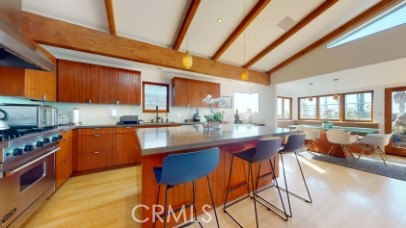 Stunning Contemporary Ocean-View Home in the Heart of Manhattan Beach! Welcome to 3205 Bayview Drive, a remodeled coastal gem in Manhattan Beach’s Sand Section. This 3-bedroom, 3-bathroom home spans 2,350 sq. ft. and offers the perfect blend of luxury and beachside living, just steps from the Pacific Ocean and The Strand. Inside, expansive windows and soaring vaulted wood ceilings showcase stunning ocean views from the great room, complete with oversized wood-burning fireplace, while the open floor plan features a primary suite with massive fireplace, a guest room with a queen bed, and a bunk room with 4 beds—ideal for families. A sofa bed in the living room provides extra flexibility. The gourmet kitchen boasts high-end appliances, including a full oven range, dishwasher, and wine fridge, all with ocean views. Step outside to a private, 1000 Sq Ft deck with a fire pit, loungers, dining area, BBQ, and panoramic coastal vistas. Additional amenities include in-house laundry, smart TVs, vaulted ceilings, hardwood floors, and a cozy fireplace. This pet-friendly home also offers 2 garages and is located in the heart of Mid Manhattan Beach, close to coffee shops, boutiques, restaurants, and the beach. 3205 Bayview Drive – your gateway to an unforgettable beachside living.